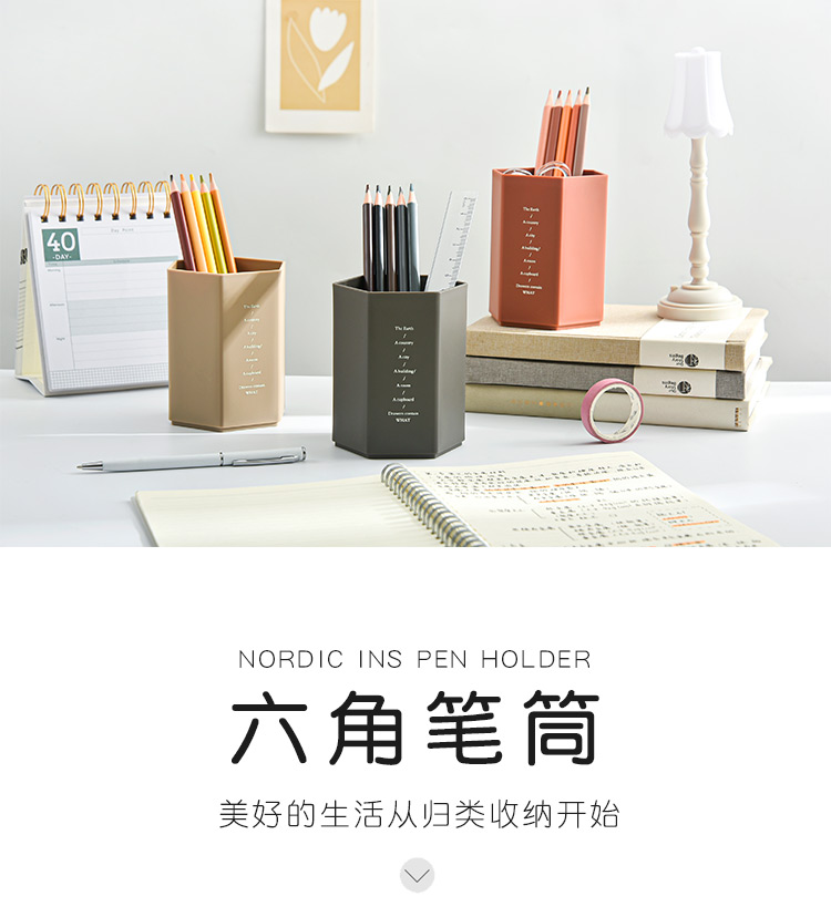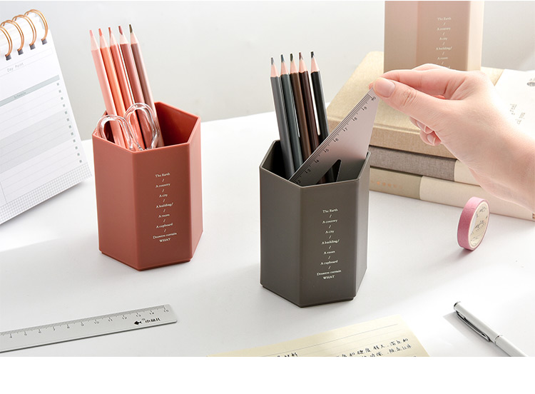 三年二組大容量日系insシンプル学生用六角筆筒創意個性筆桶デスクトップ収納K