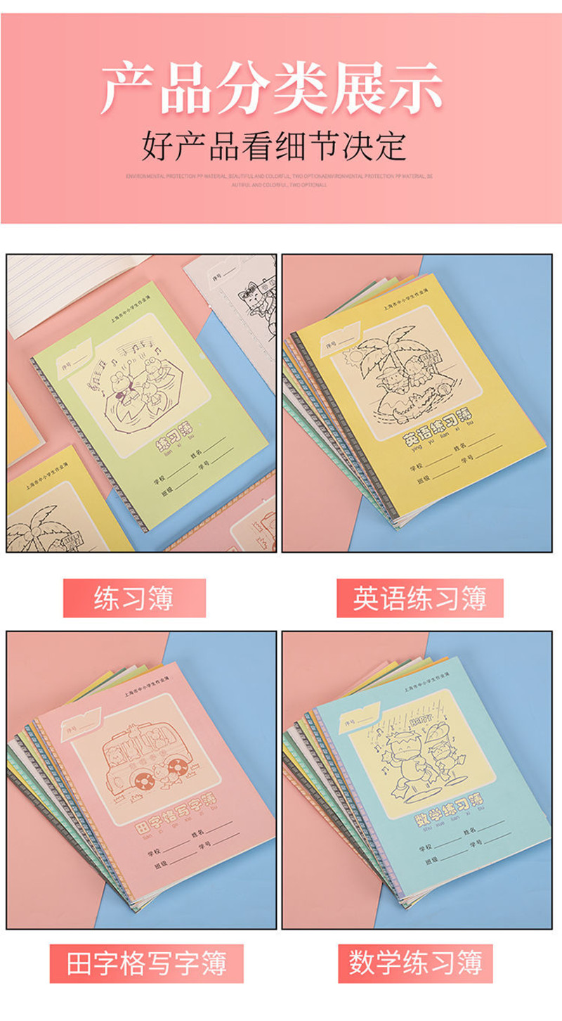 10本墨爾上海小中学生練習帳浦東宝山英語田字宿題帳近視防止紙の厚さ