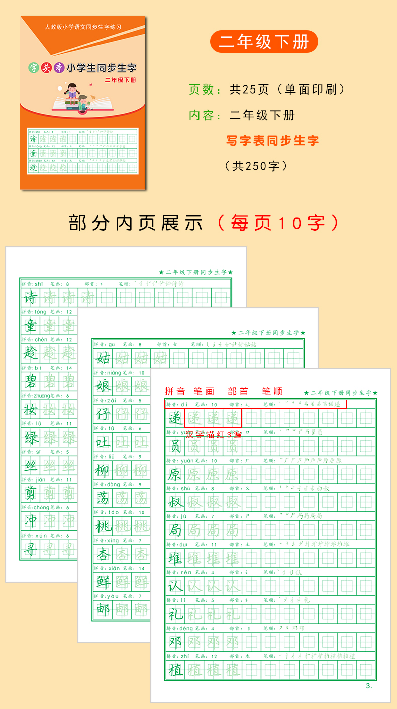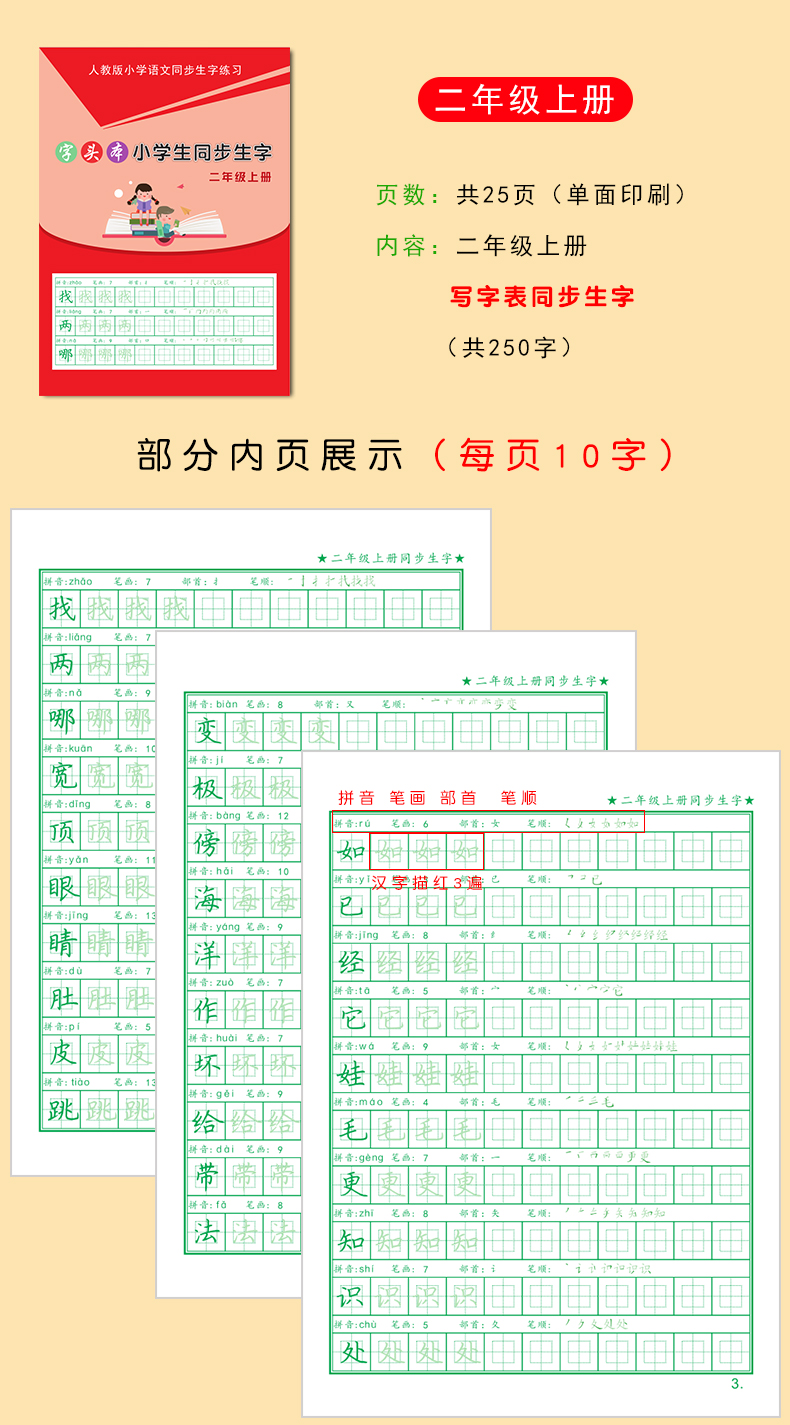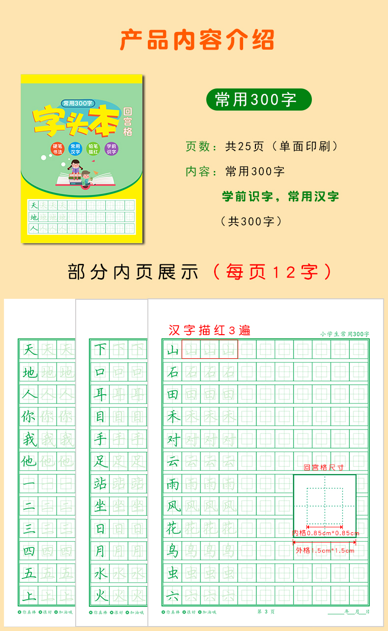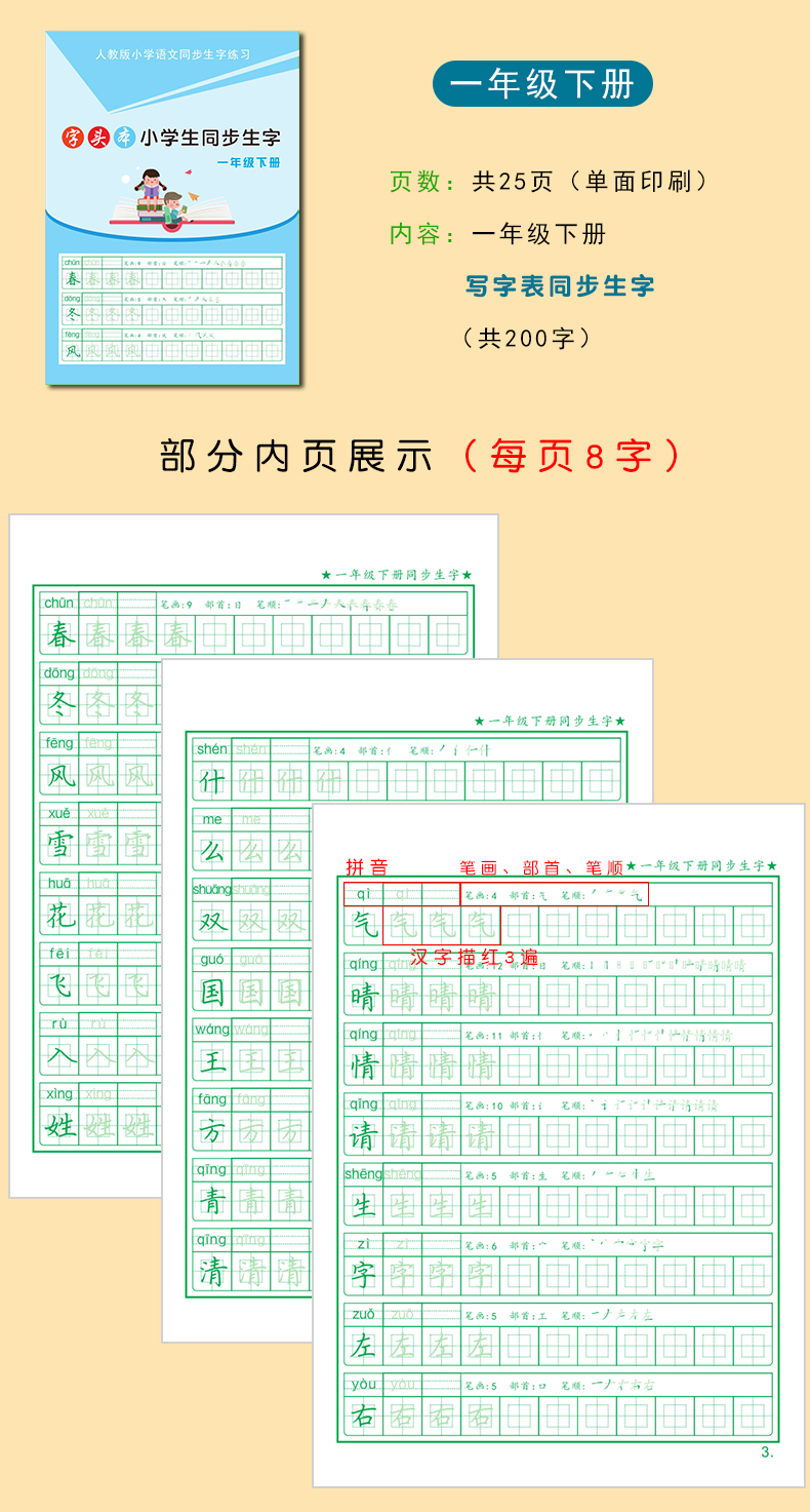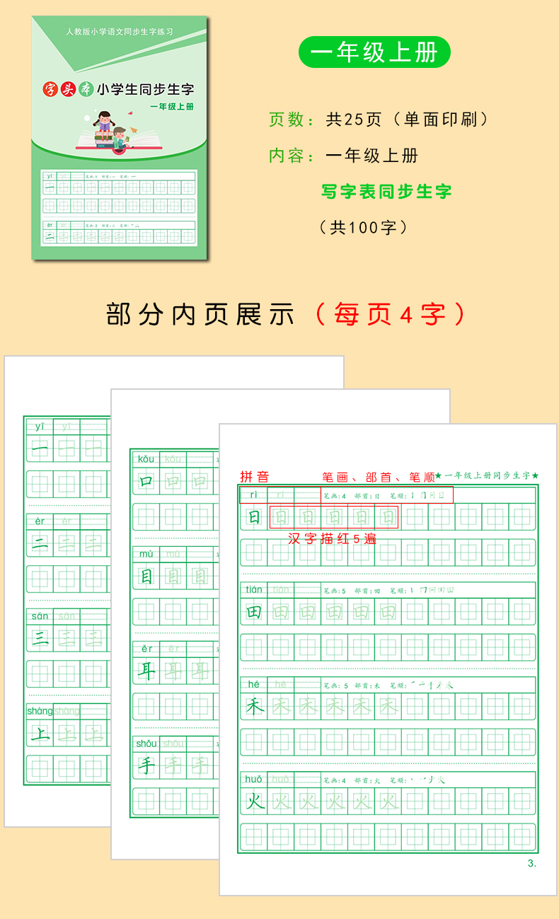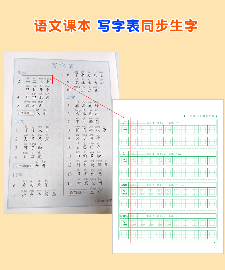 回宮格字頭本幼稚園の小学生の一二三年生の国語の教科書は同期して字を練習します。