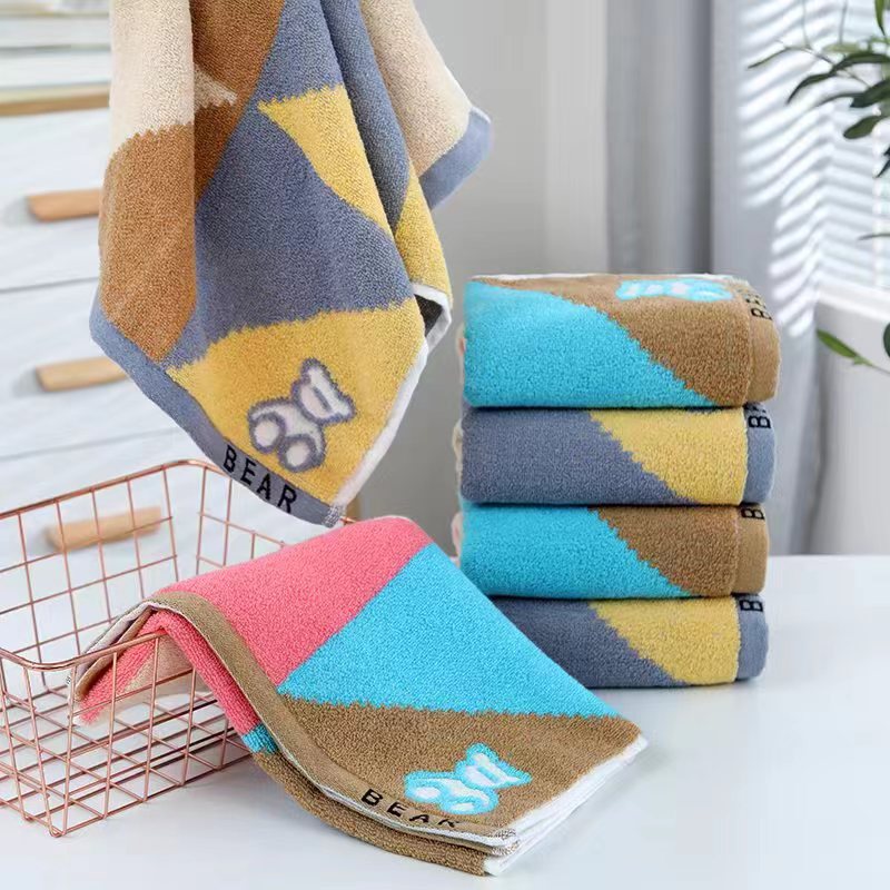 メーカー卸売り120g綿14本の交絡紡タオル色織三角熊成人カップルの顔拭きタオル厚さ