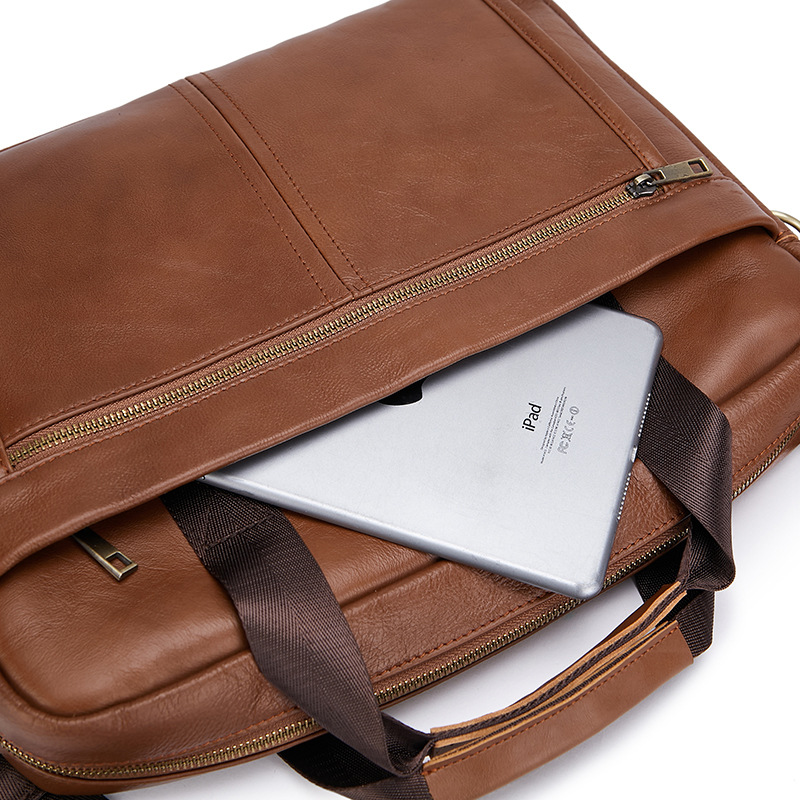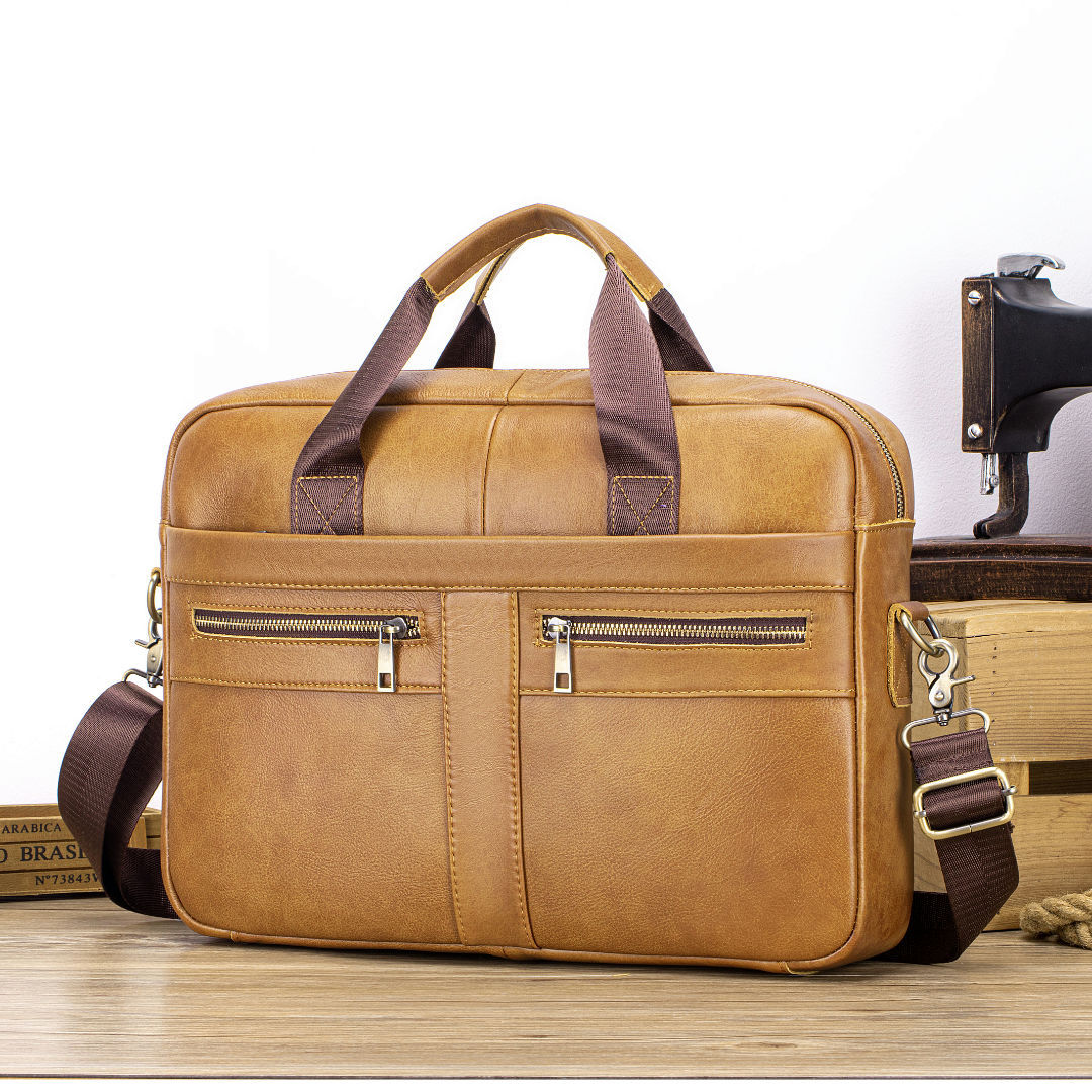 メンズ本革ハンドバッグビジネス出張ブリーフケース15インチパソコンバッグトップ層牛革シングルショルダーバッグクロスボーダー