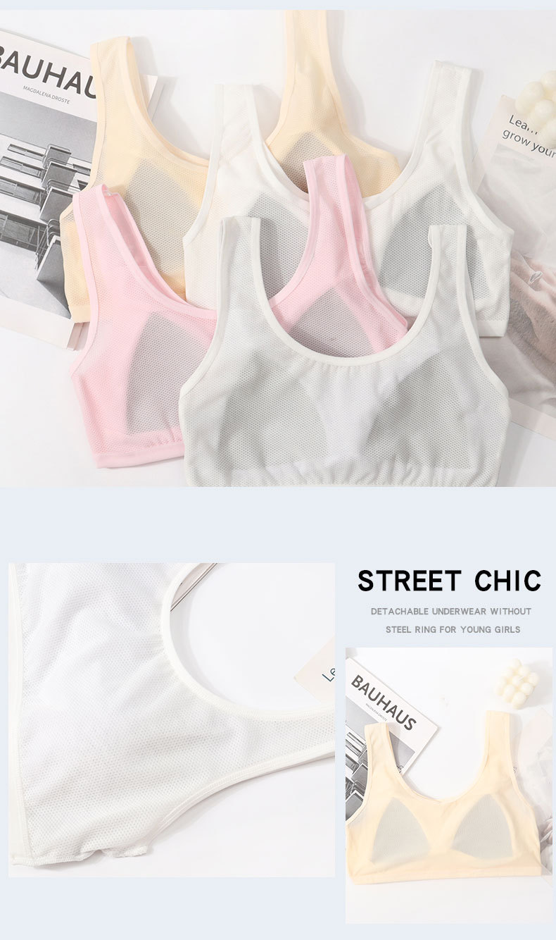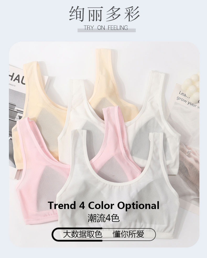 青春期少女内衣初中高中学生发育期透气网纯棉小背心薄全棉无钢圈