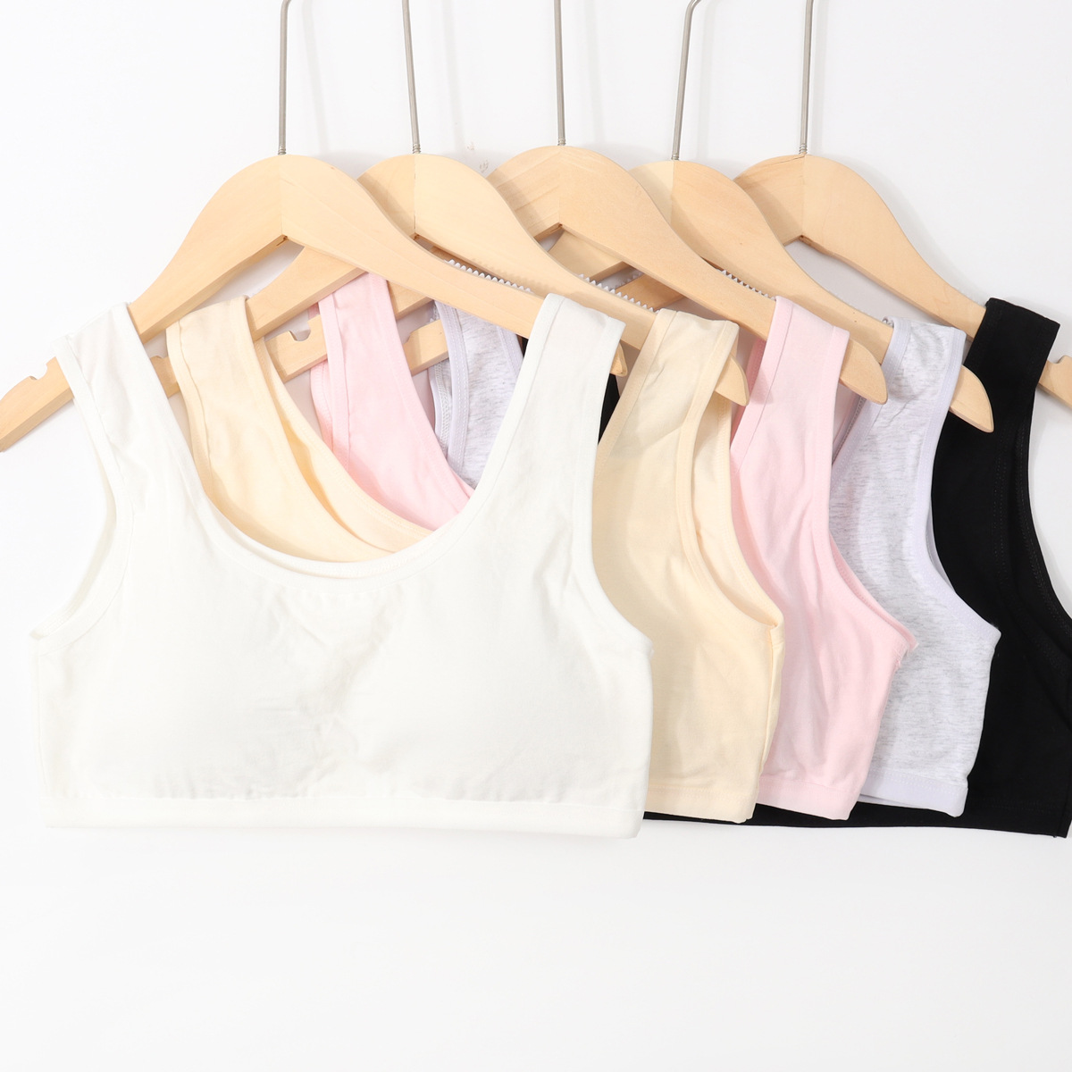 新しい女の子の純色の綿の女の子のベストは胸の女の子の発育期の韓国版の下着の単層のガーターの美の背中を巻いて胸を拭きます。