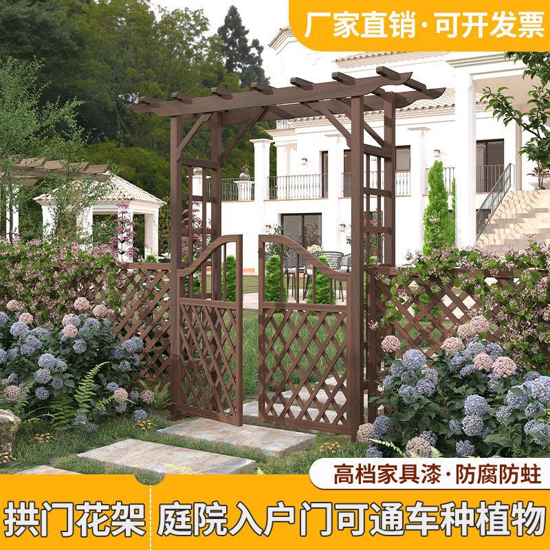 屋外庭園防腐木アーチ花架花園装飾入戸門実木月季藤架柵ブドウ架