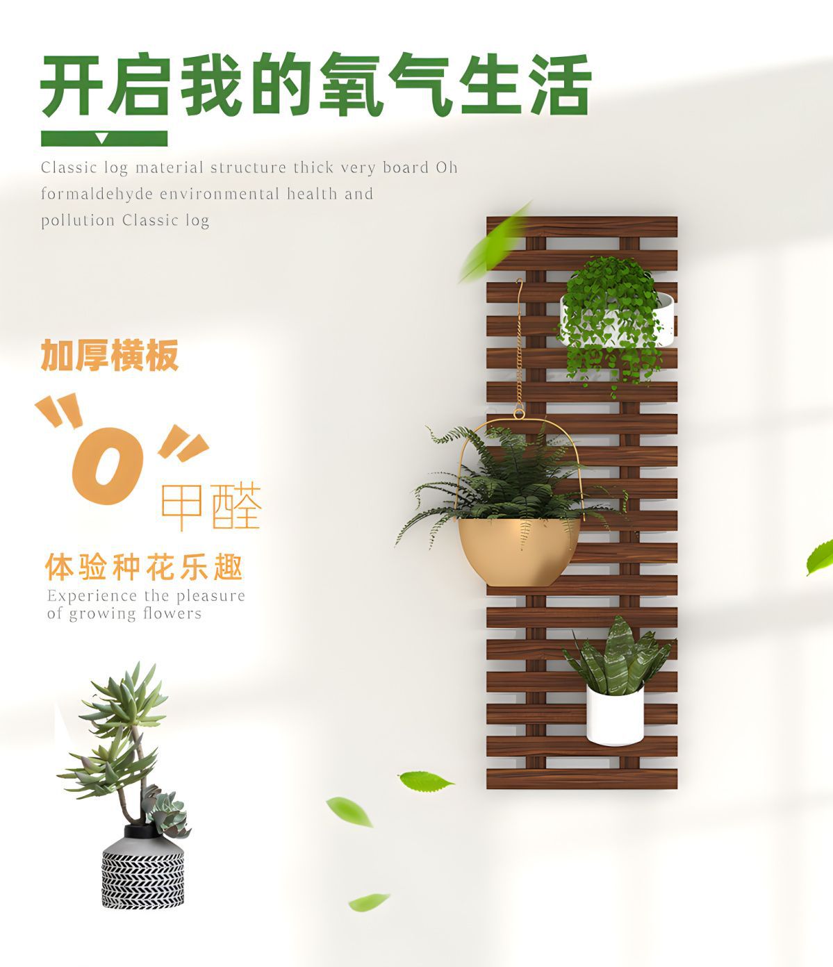 実木壁装飾花架室内ベランダ壁掛け緑植物架客間掛け壁シミュレーション植物吊り