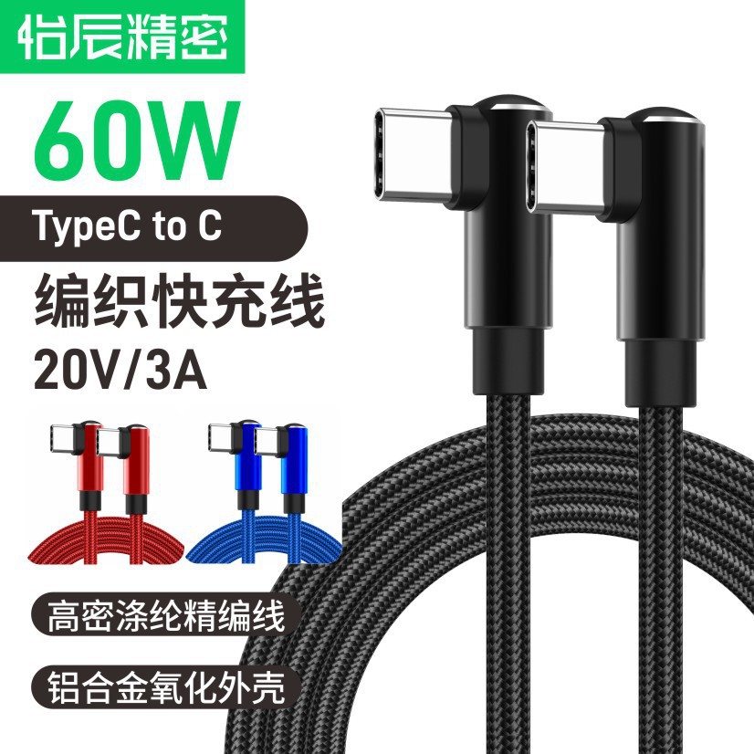 エルボーデータケーブルc to cダブルヘッドtype-cナイロン編組PD急速充電データケーブル60W3A