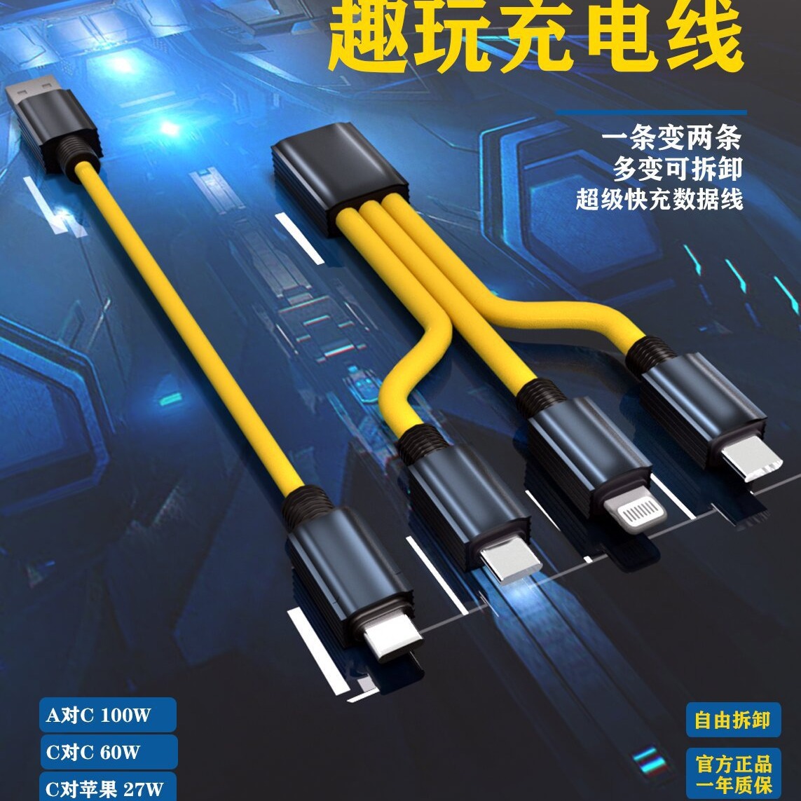 自由に分解できる USB 1 対 3 超高速充電データケーブル 1 ライン多目的 100 ワット高速充電 60 ワット高速充電 27 ワット高速