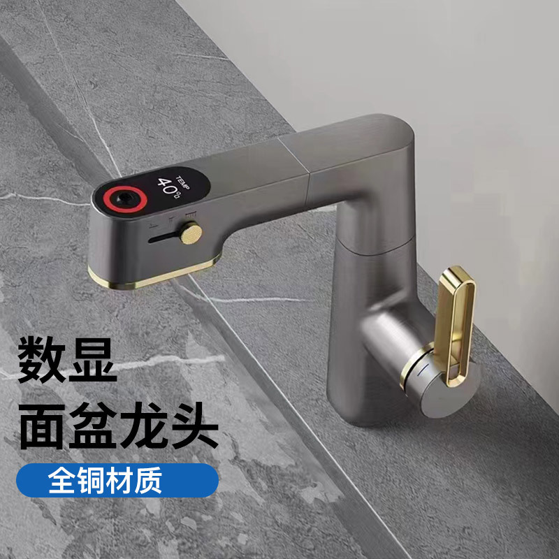 全銅の銃の灰色のデジタル表示の回転の引き出し式の洗面器の蛇口は昇降します。