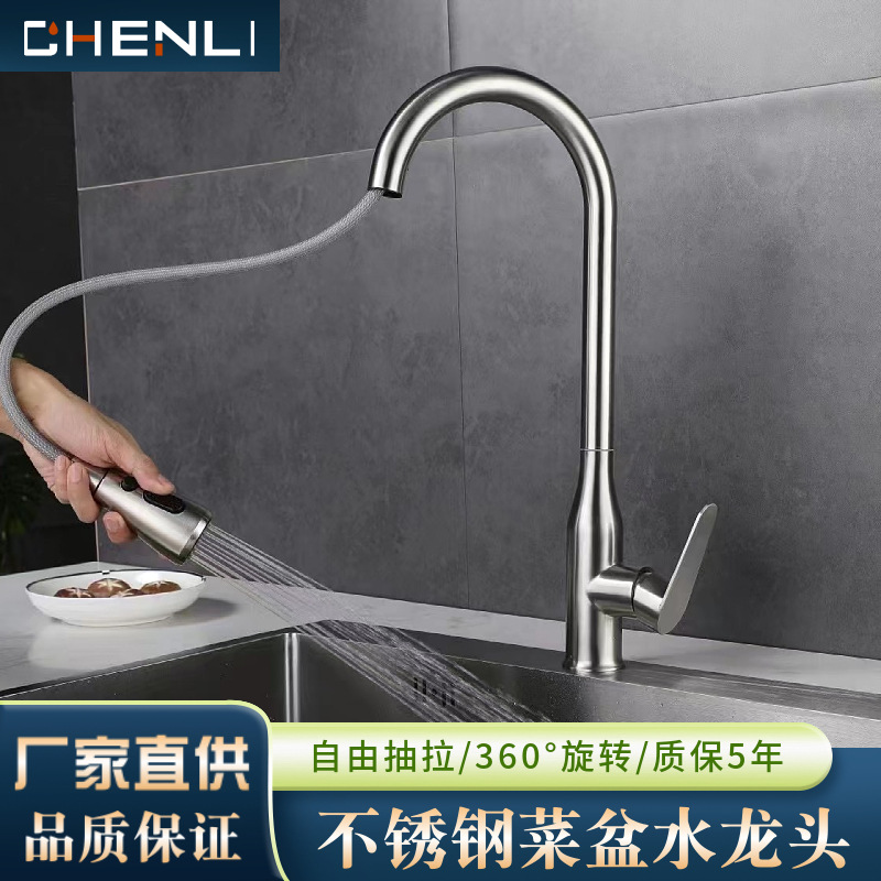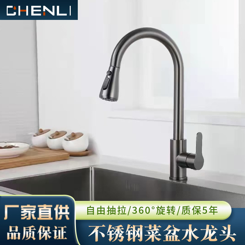 304ステンレスキッチン引き式冷熱蛇口洗面器水槽のしぶき防止伸縮可能コーラボトル蛇口