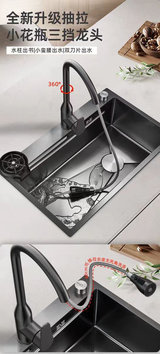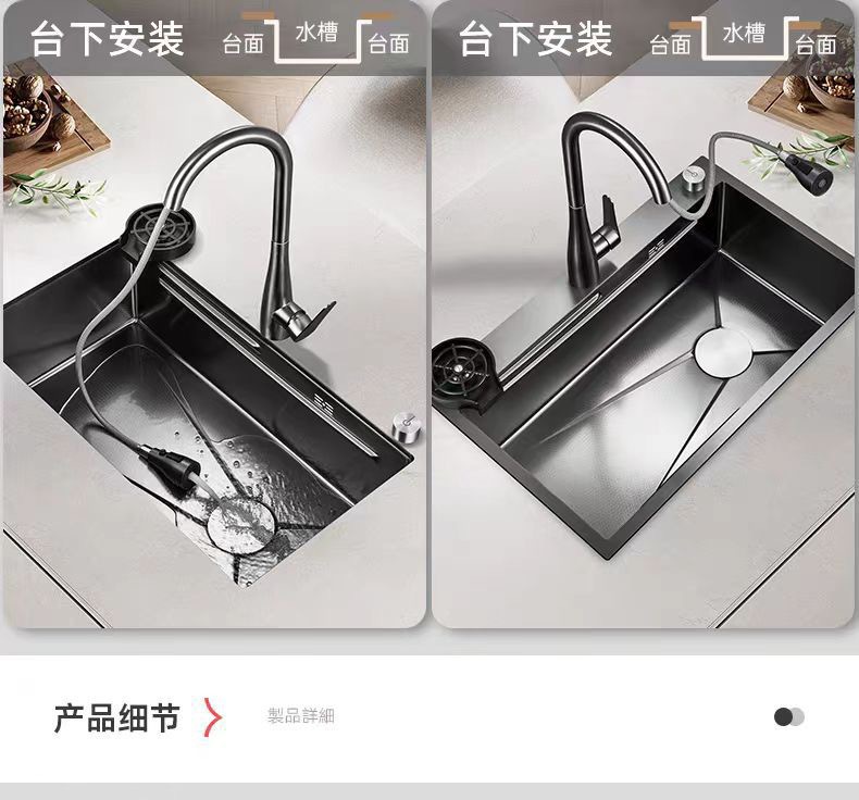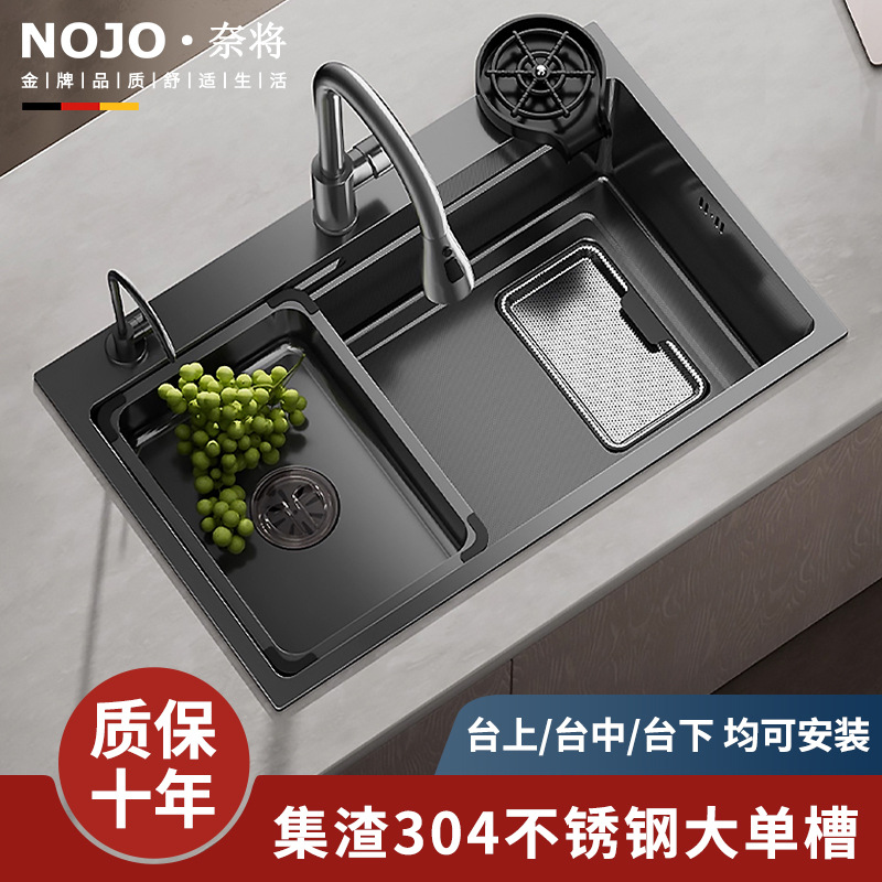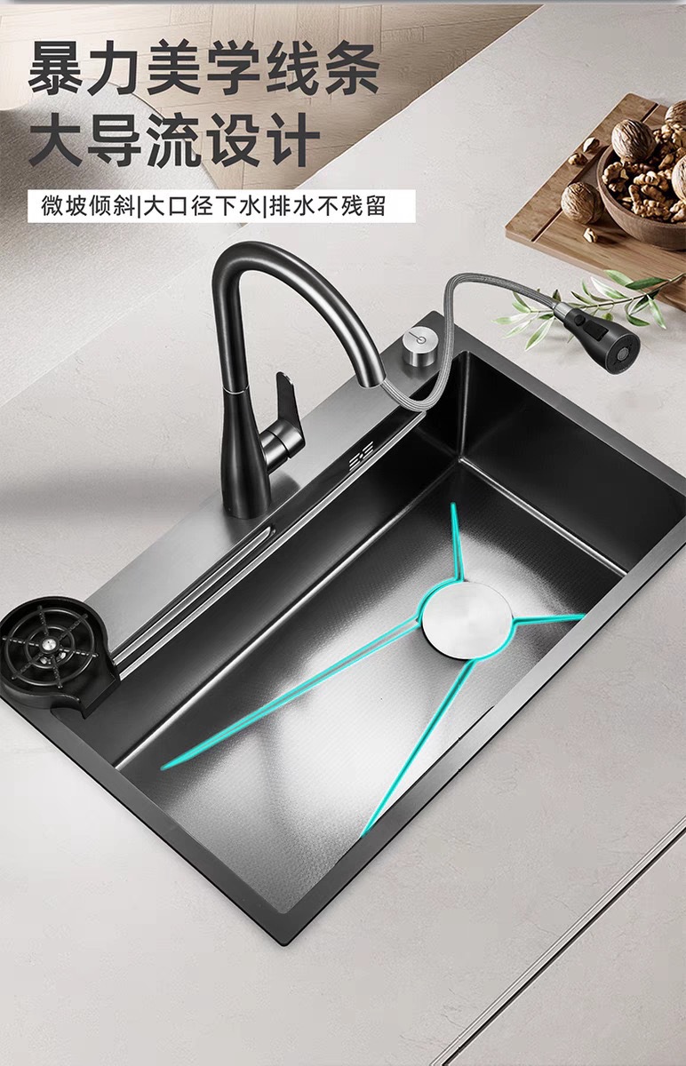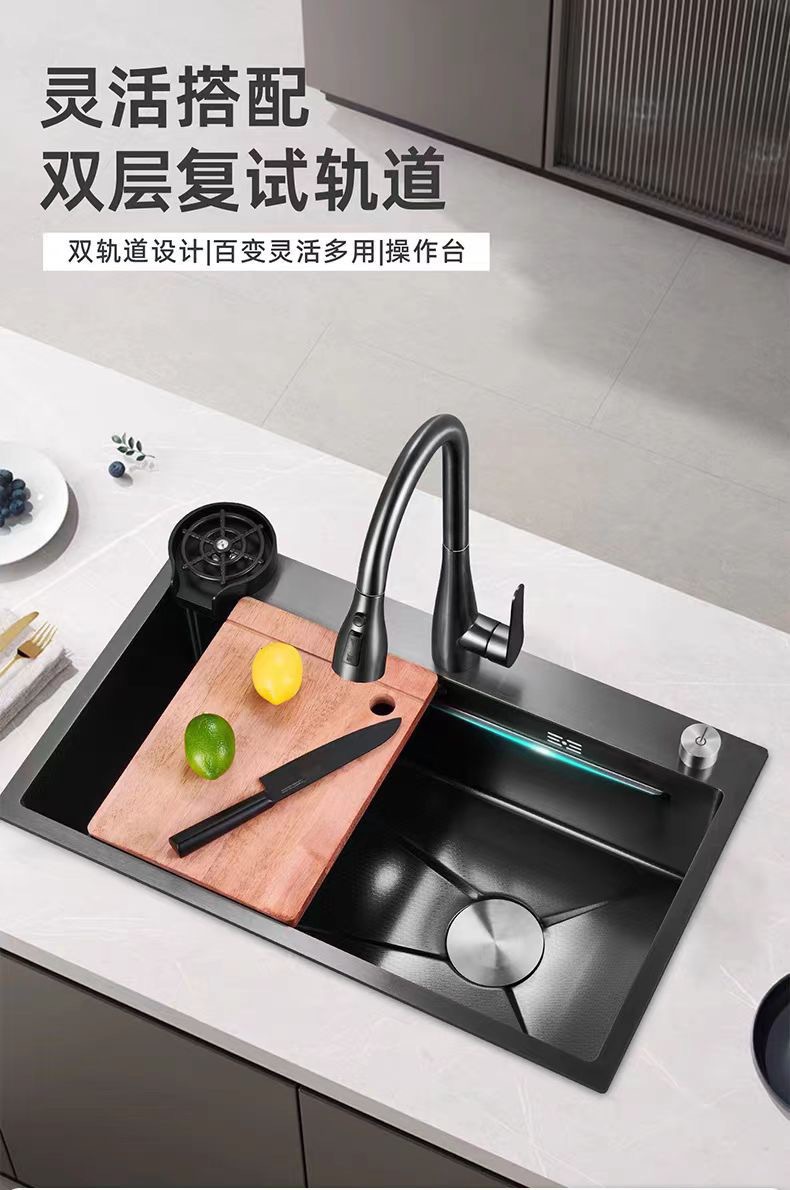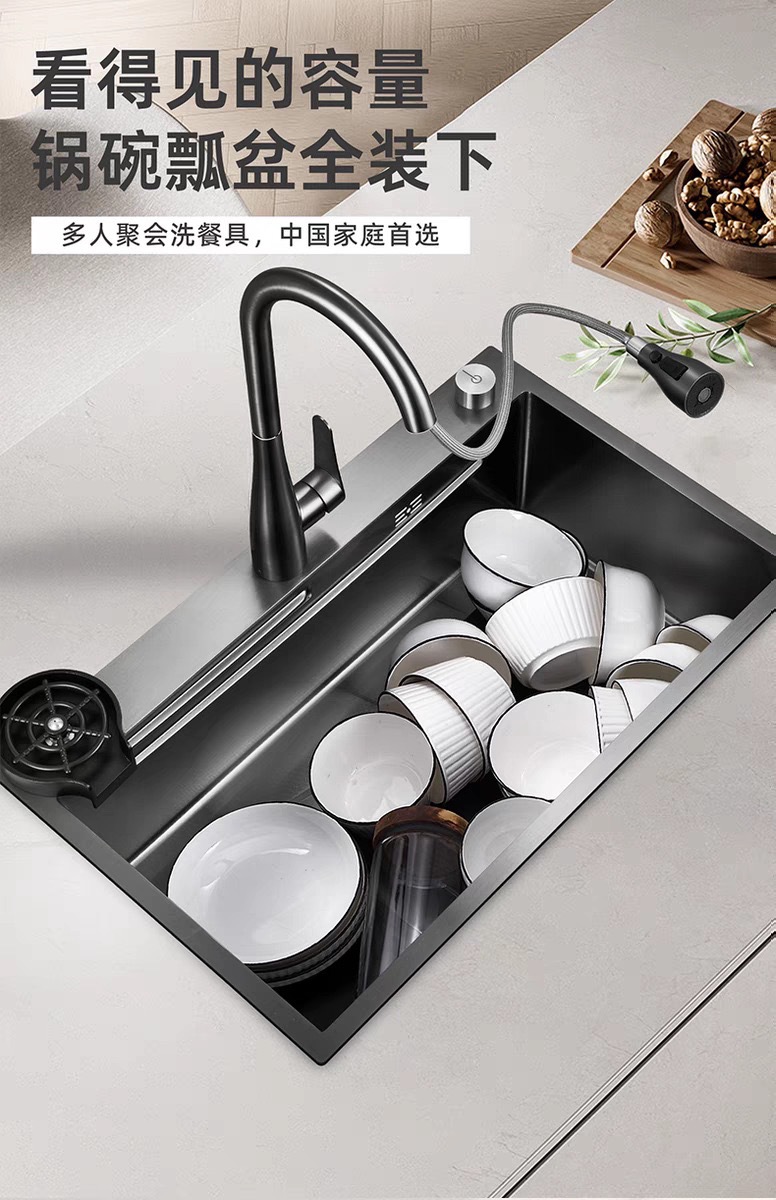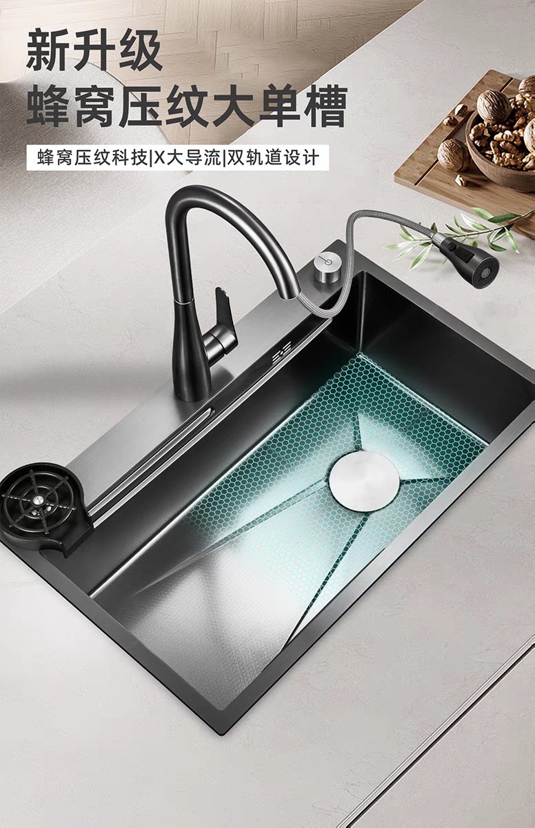 国境を越えたクジラ SUS304 家庭用キッチンシンク滝ナノハニカムデジタルディスプレイシンク大型シングルスロット食器洗いシンク