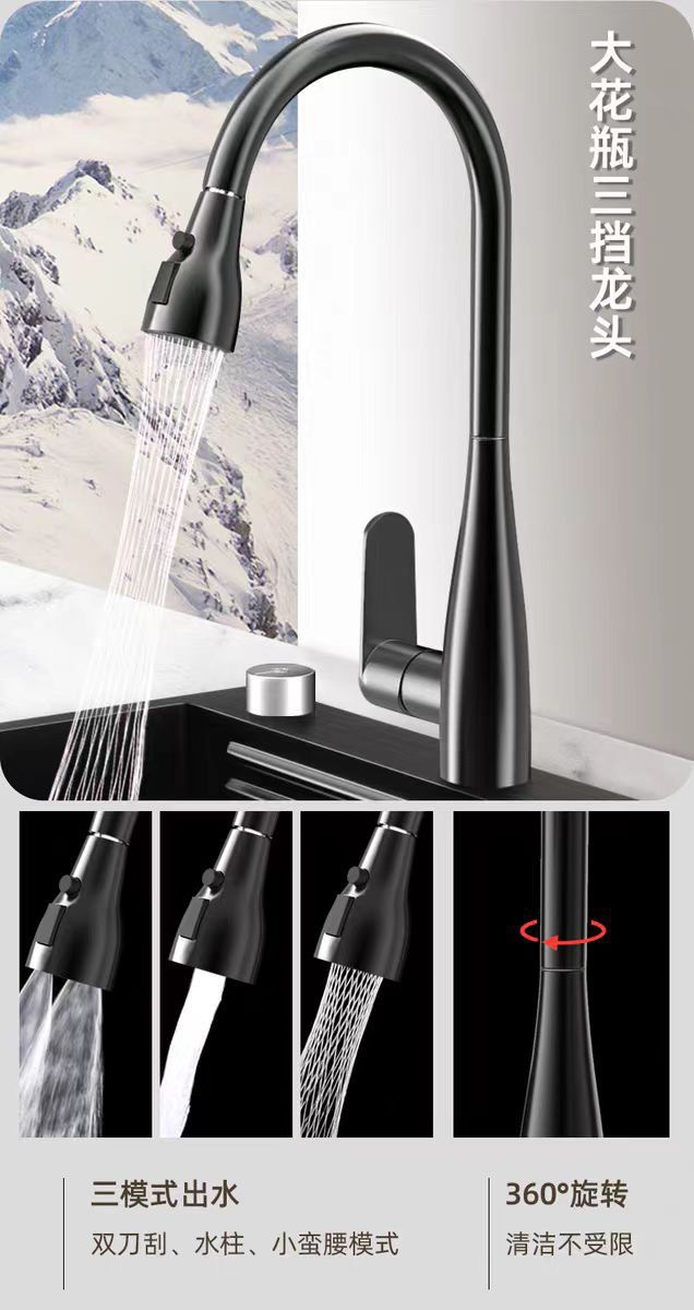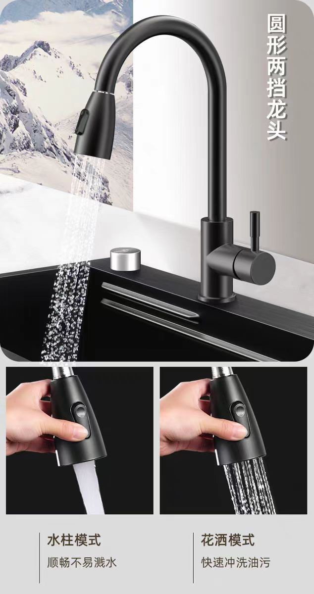 厨房不锈钢水龙头伸缩多功能飞雨瀑布洗菜冷热两用洗菜抽拉水龙头