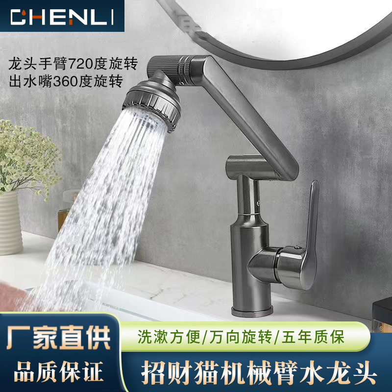 ステンレス招き猫万能蛇口冷熱双制御回転アーム家庭用トイレ洗面器蛇口