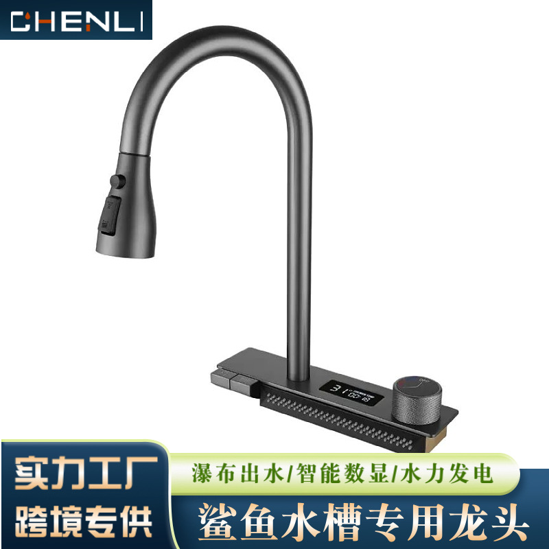 家庭用シャークウォーターフォールステンレス製キッチンシンク、シャークピアノキーデジタルディスプレイ付き水栓、大型シングルシンク専用