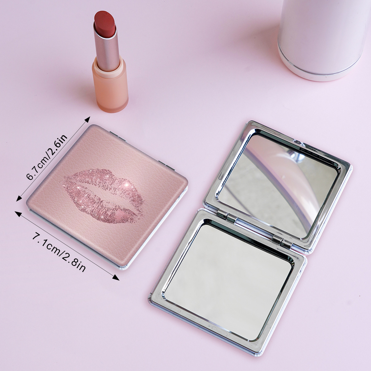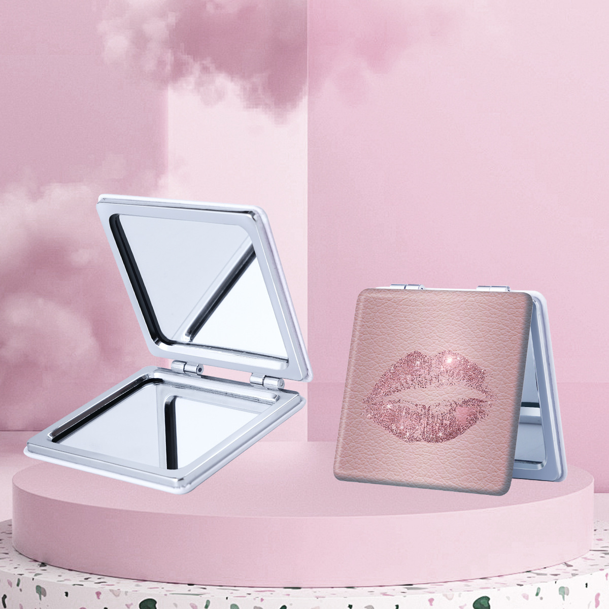 ミレニアム風唇印シリーズの化粧鏡は携帯で折りたたみ可能です。