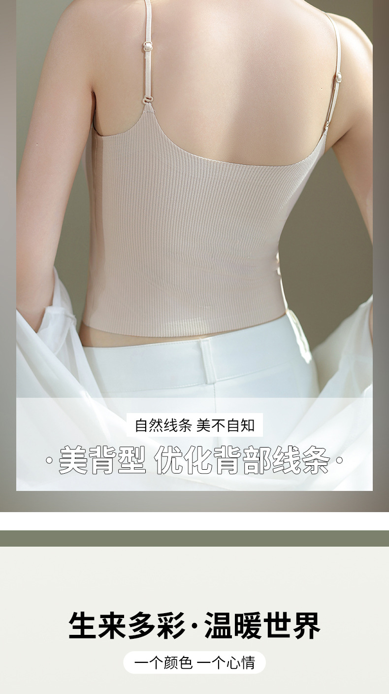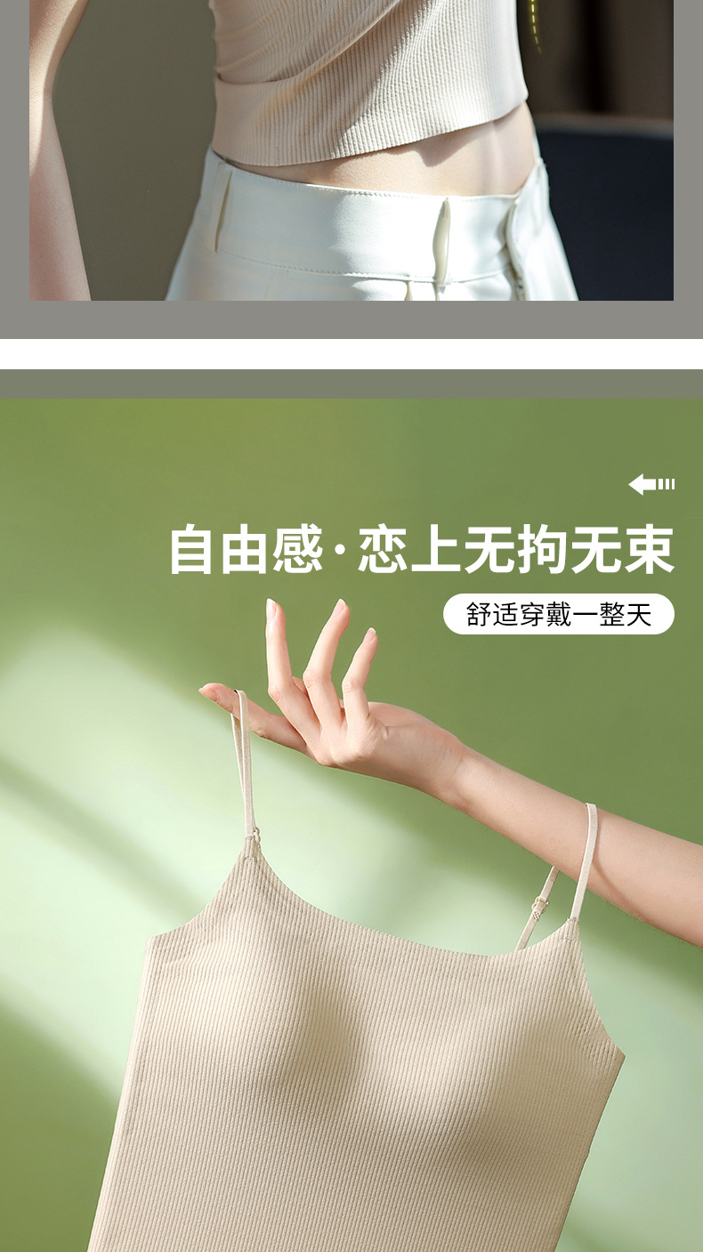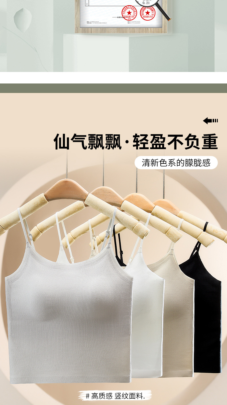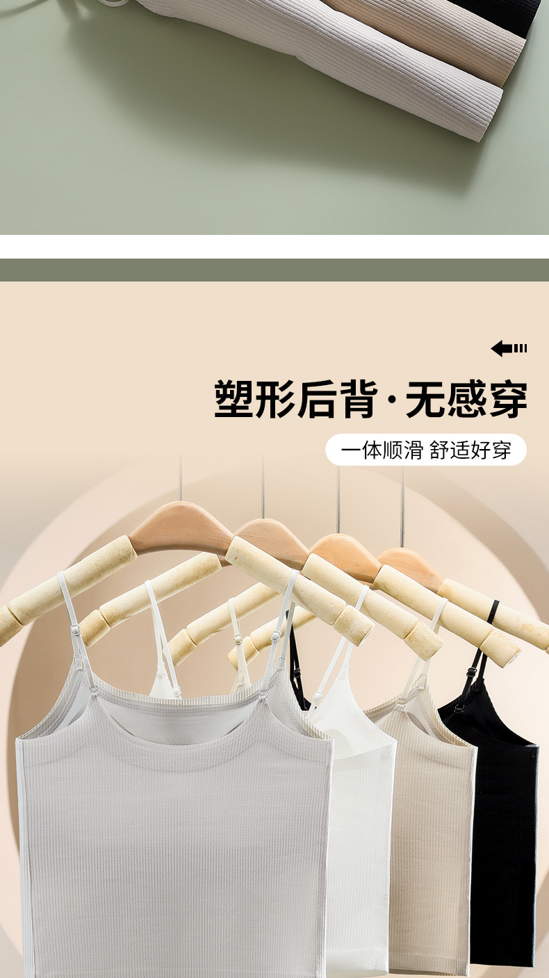 夏用薄手通気性シームレス美背キャミソール レディース一体型固定カップノンワイヤー外着用インナー