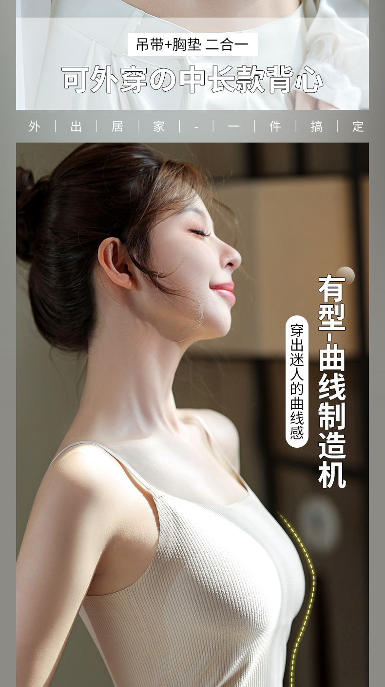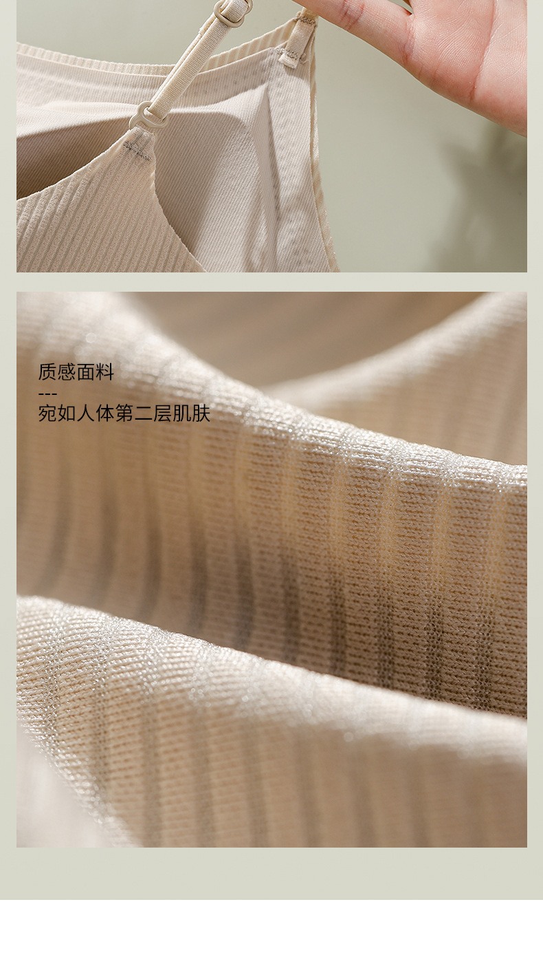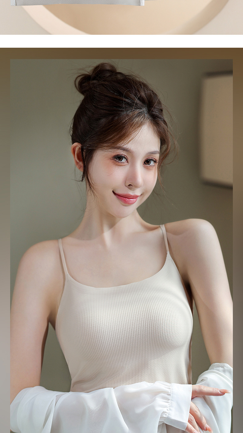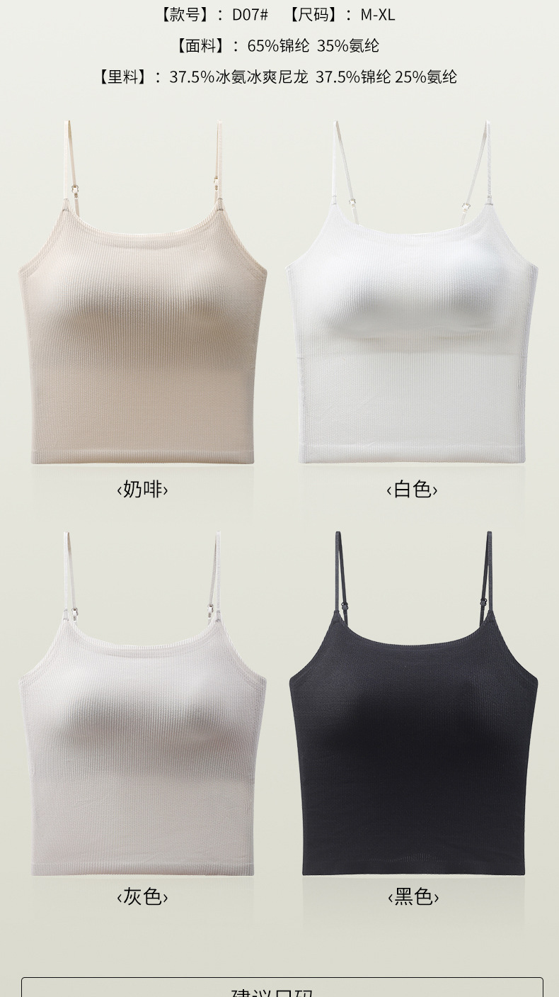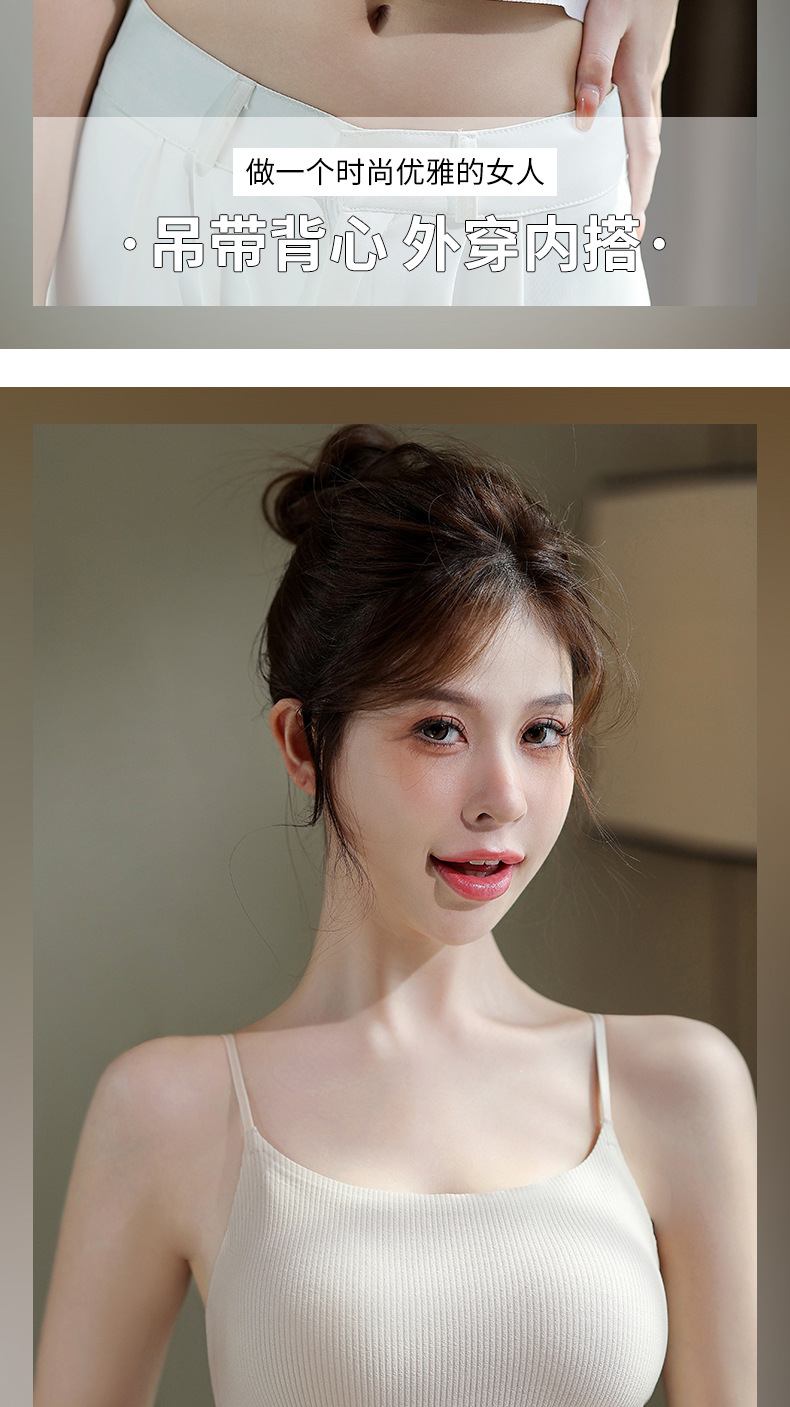 夏用薄手通気性シームレス美背キャミソール レディース一体型固定カップノンワイヤー外着用インナー