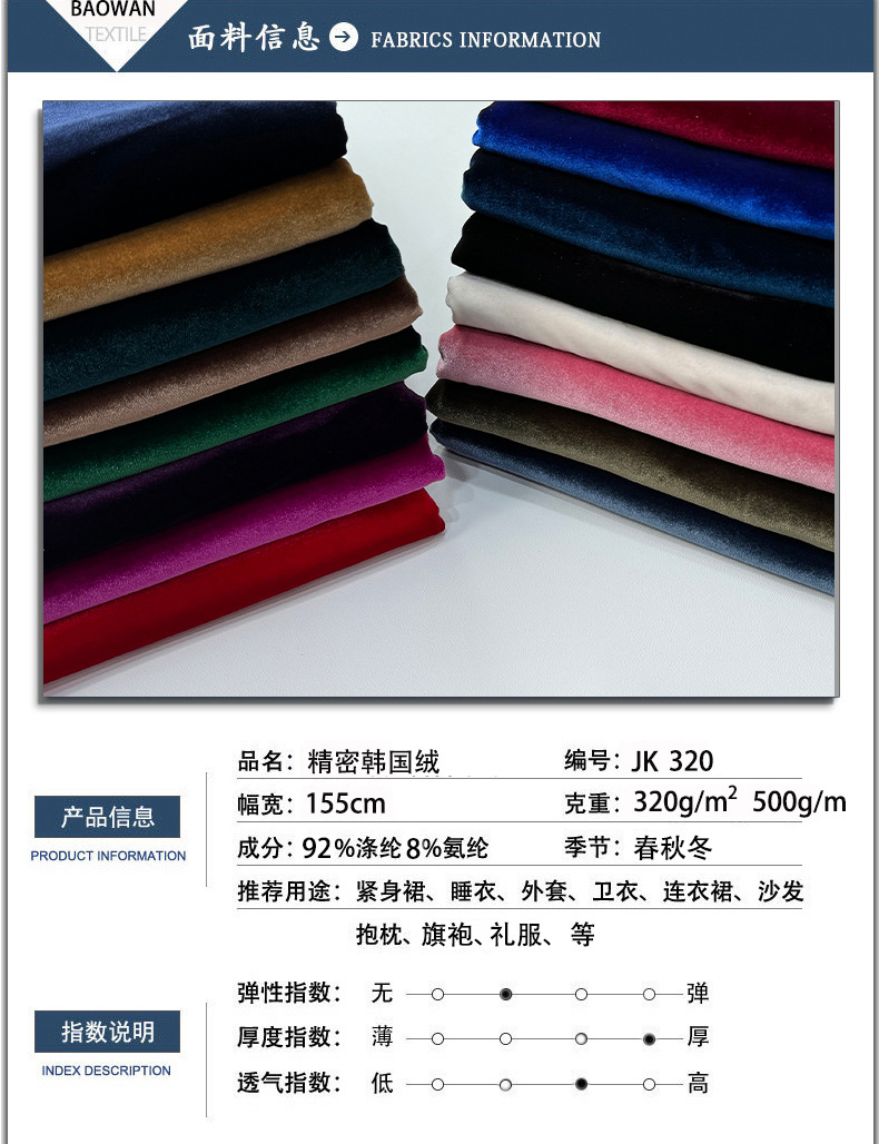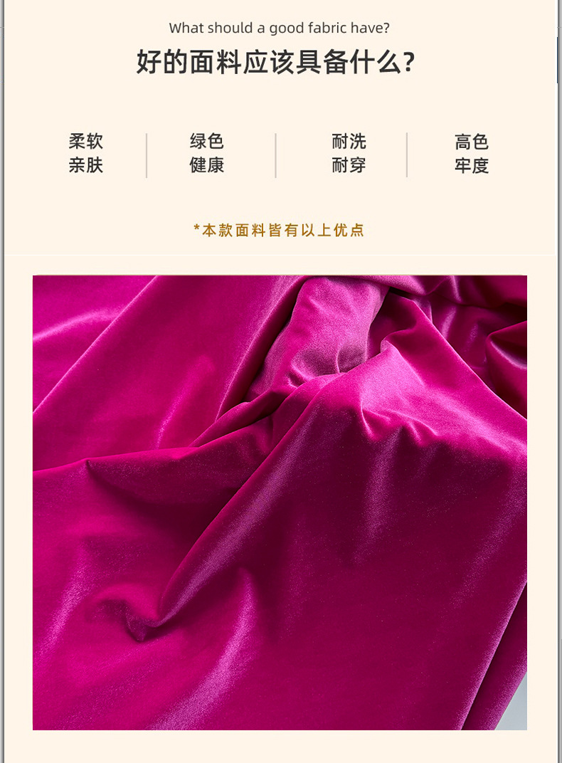 高弾性密シルクのような韓国製ベルベット生地 180g ポリエステル100% ベルベット生地 ガウン、チャイナドレス、ワンピース、ホームテキスタイル用