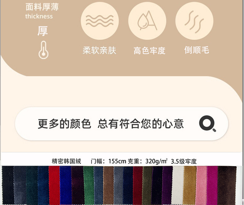 高密度韓国ベルベット320gゴールドベルベット経編ニットベルベットカーテン、チャイナドレス、スーツ、ワイドレッグパンツ、ホームテキスタイル