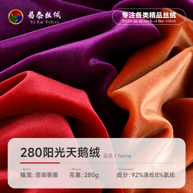280 グラムサンシャインベルベット生地、横編みポリエステルとスパンデックスのストレッチベルベット生地、秋冬婦人服ドレス生地