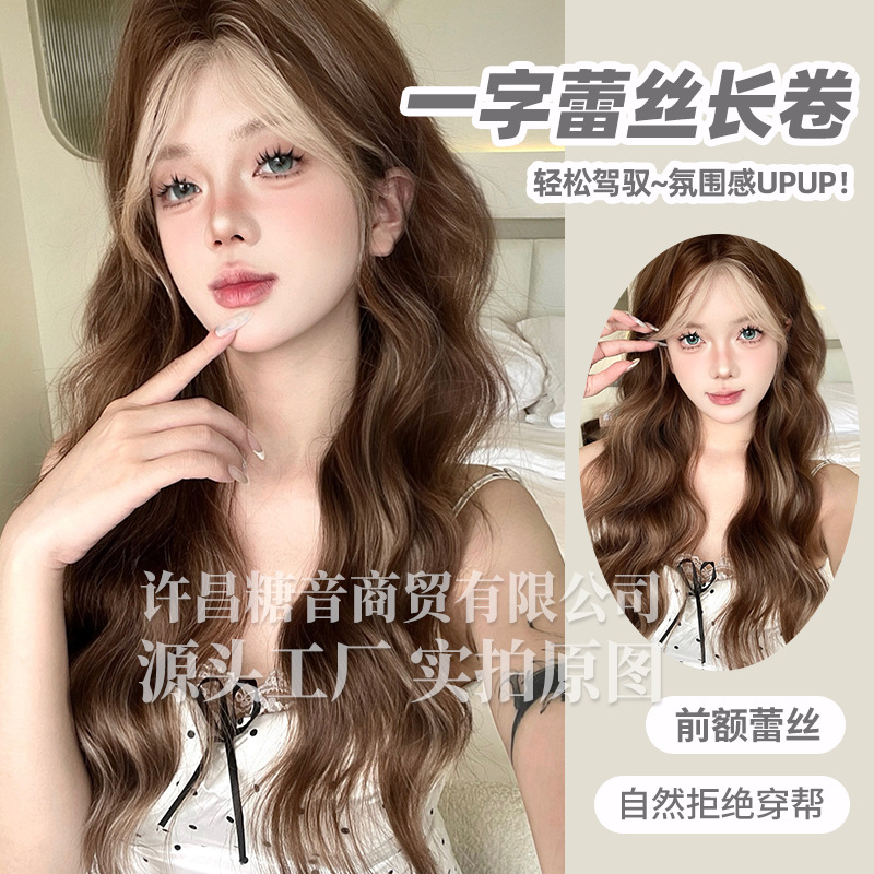砂糖の音のかつらの夏の新型の1字のレースのグラデーションの女性の日常のネットの赤い長い巻きの髪は自然に迫力があります。