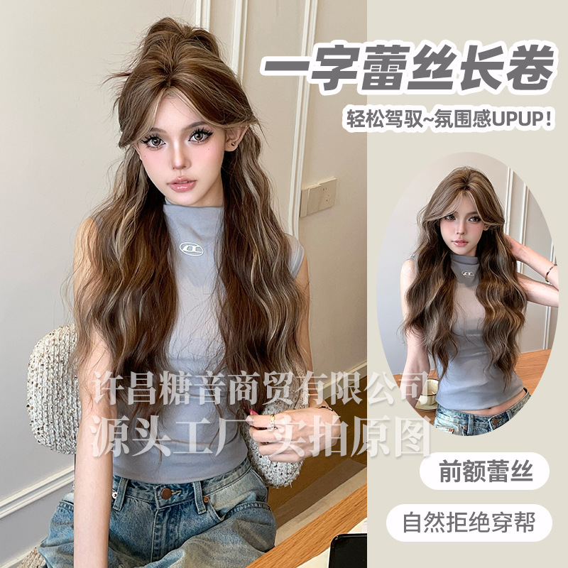 Tangyin ウィッグ夏の新しいスタイルワンラインレースグラデーション女性の日常インターネット有名人ロング巻き毛自然でリアルなフルヘッドギア