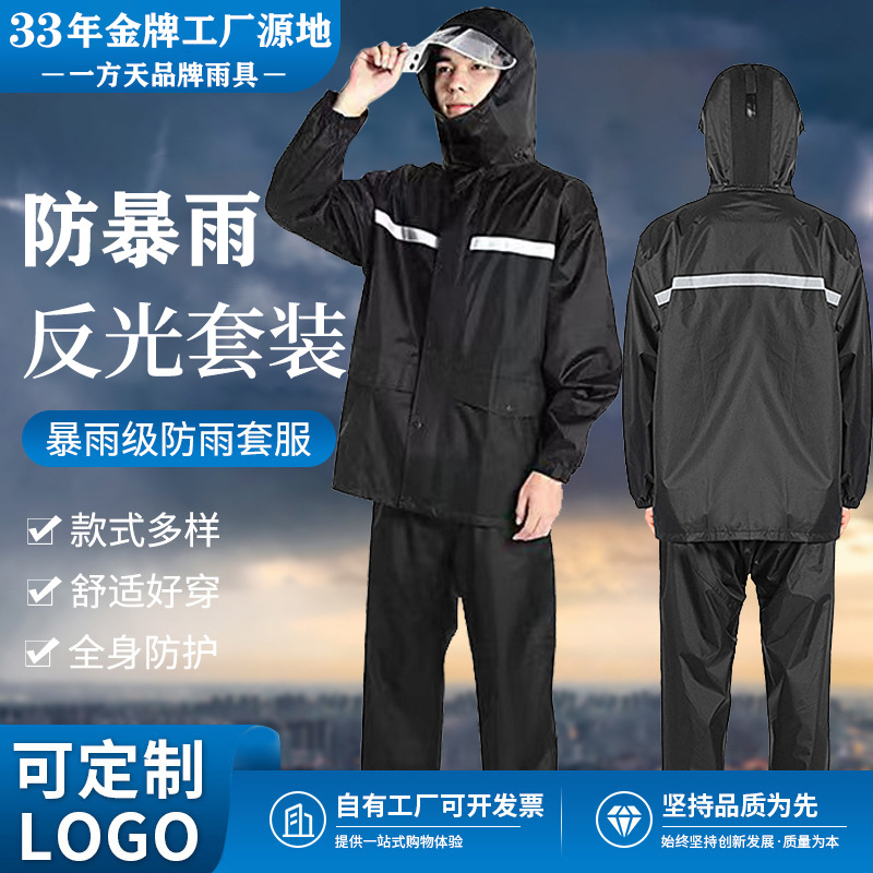 クロスボーダーPVC厚手二重労働保護レインコートレインパンツセット防豪雨ダブルキャップ高反射レインコート卸売り