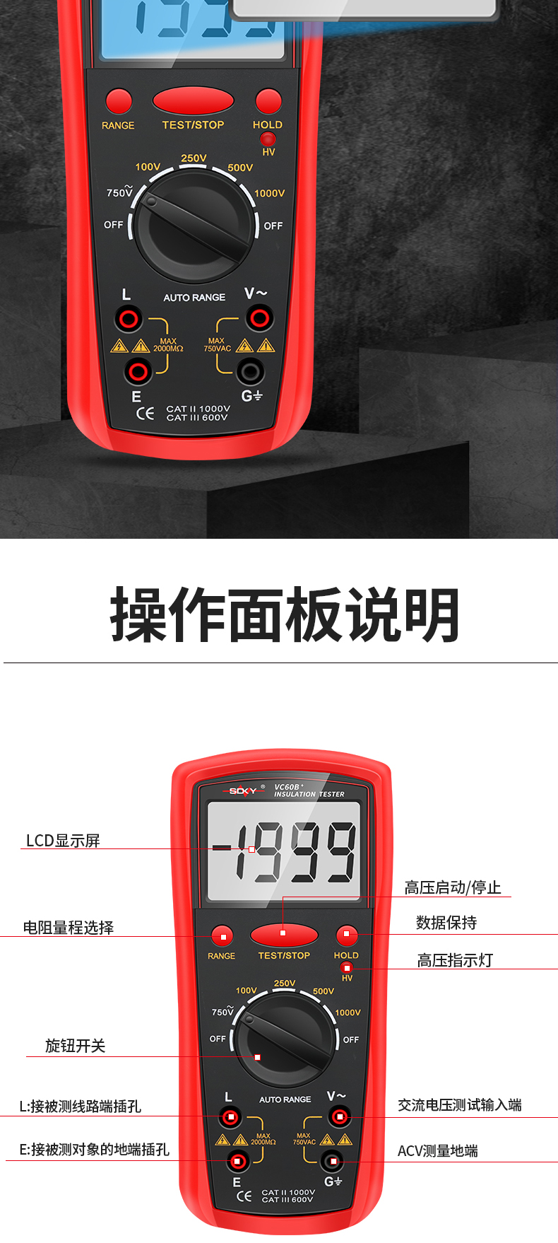 勝徳高精度絶縁抵抗試験機vc 60bデジタル兆欧計絶縁試験機電子揺動計