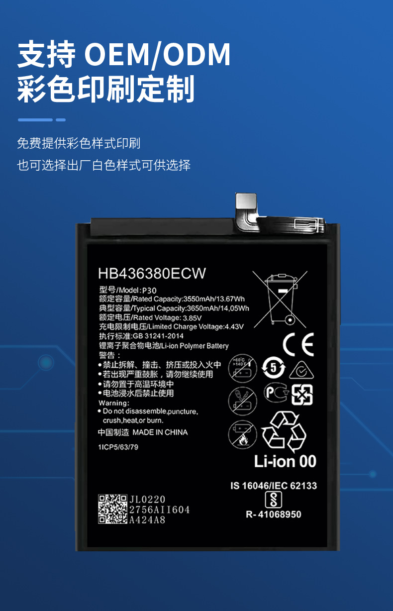 Huawei P10Pバッテリー、P20、P30バッテリー、P40バッテリーに適用。大容量純コバルト電池セルをアップグレードしたバッテリーメーカー。