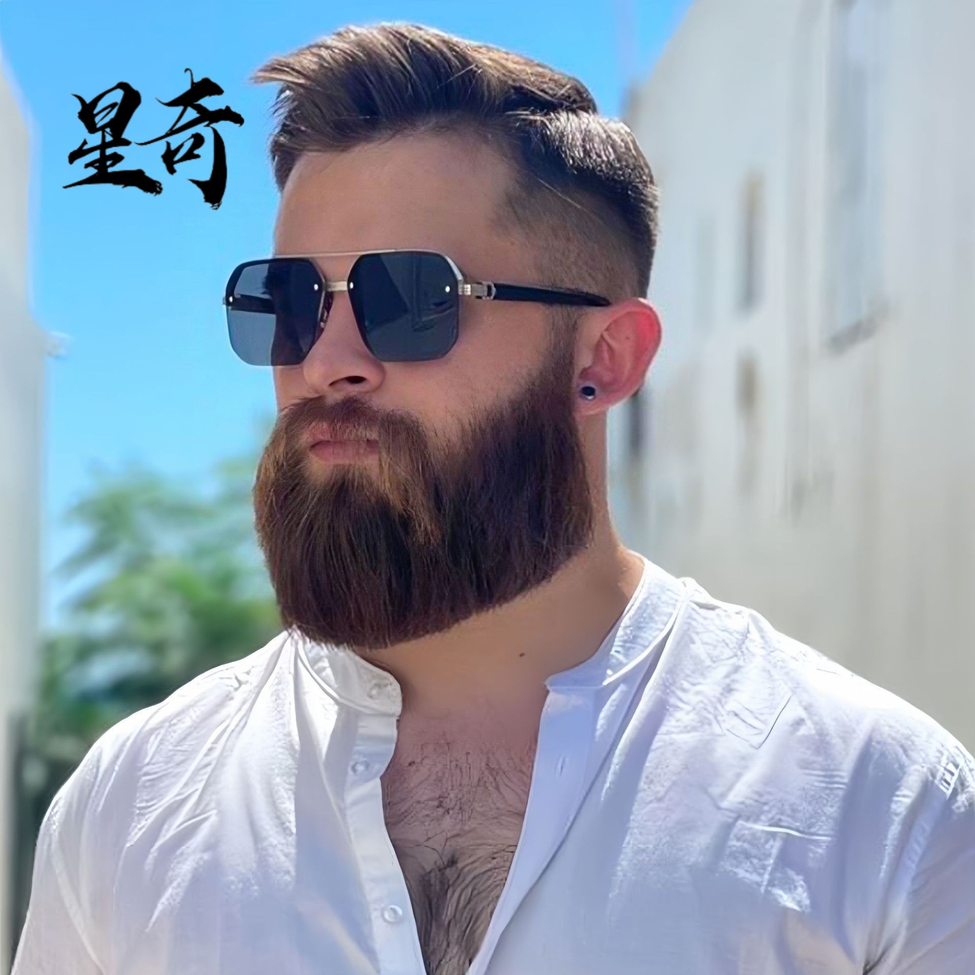 跨境双粱方形太阳镜欧美半框个性简约时尚大脸显瘦经典复古墨镜