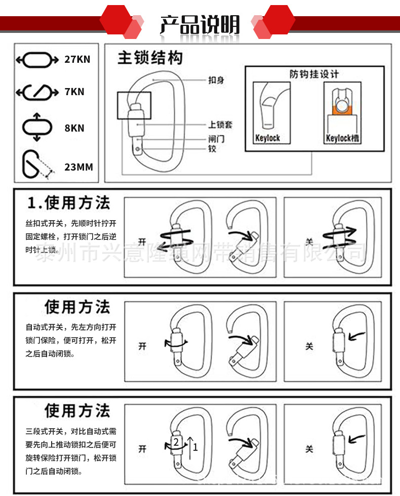 欣達ロッククライミングの荷重は主に登山ボタンをロックします。