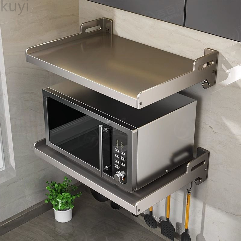 電子レンジラックの壁を厚くしたステンレスキッチンオーブンの物置棚レストランの壁掛け式電子レンジスタンドブラケット