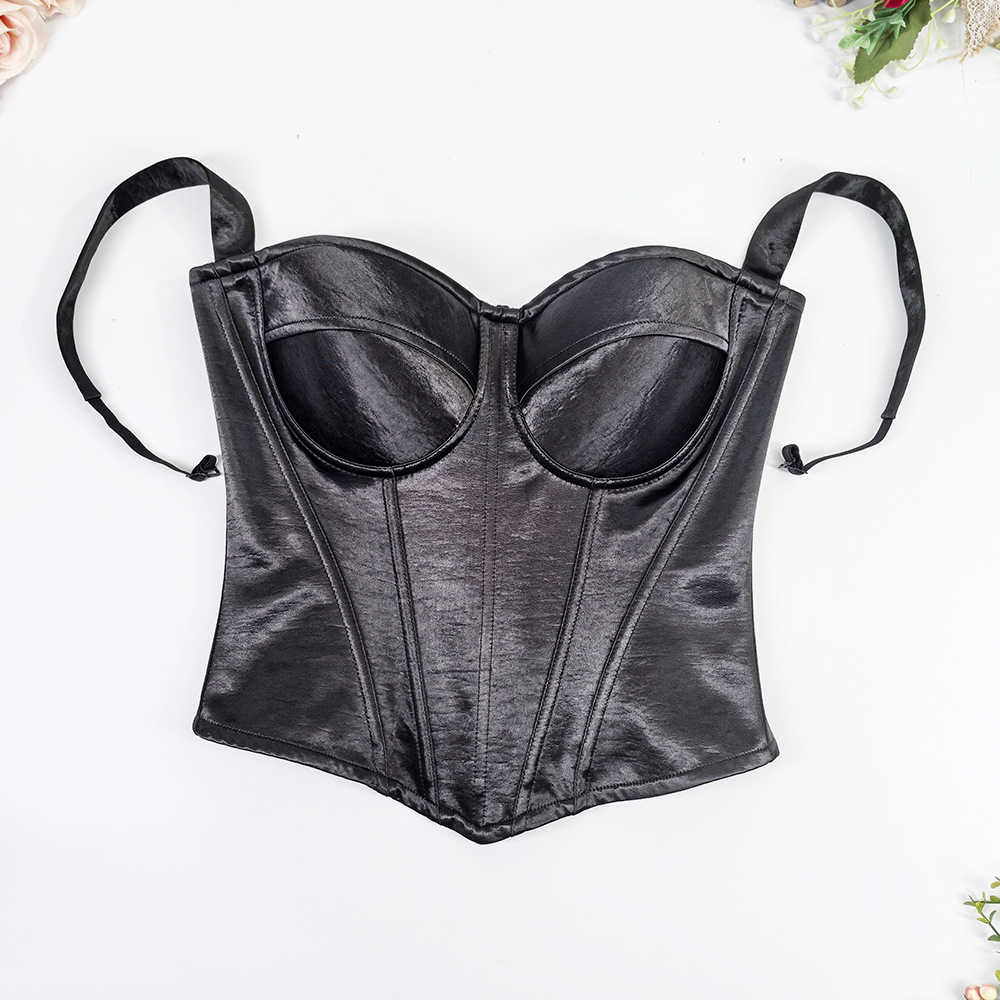 醋酸缎面色丁内搭吊带抹胸内衣外穿北欧风聚拢美背收副乳鱼骨胸衣