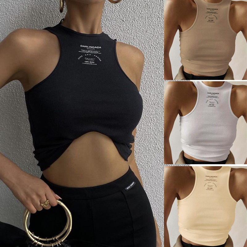 2022夏の新型欧米風のアルファベットのプリントがセクシーで、臍を露出しています。