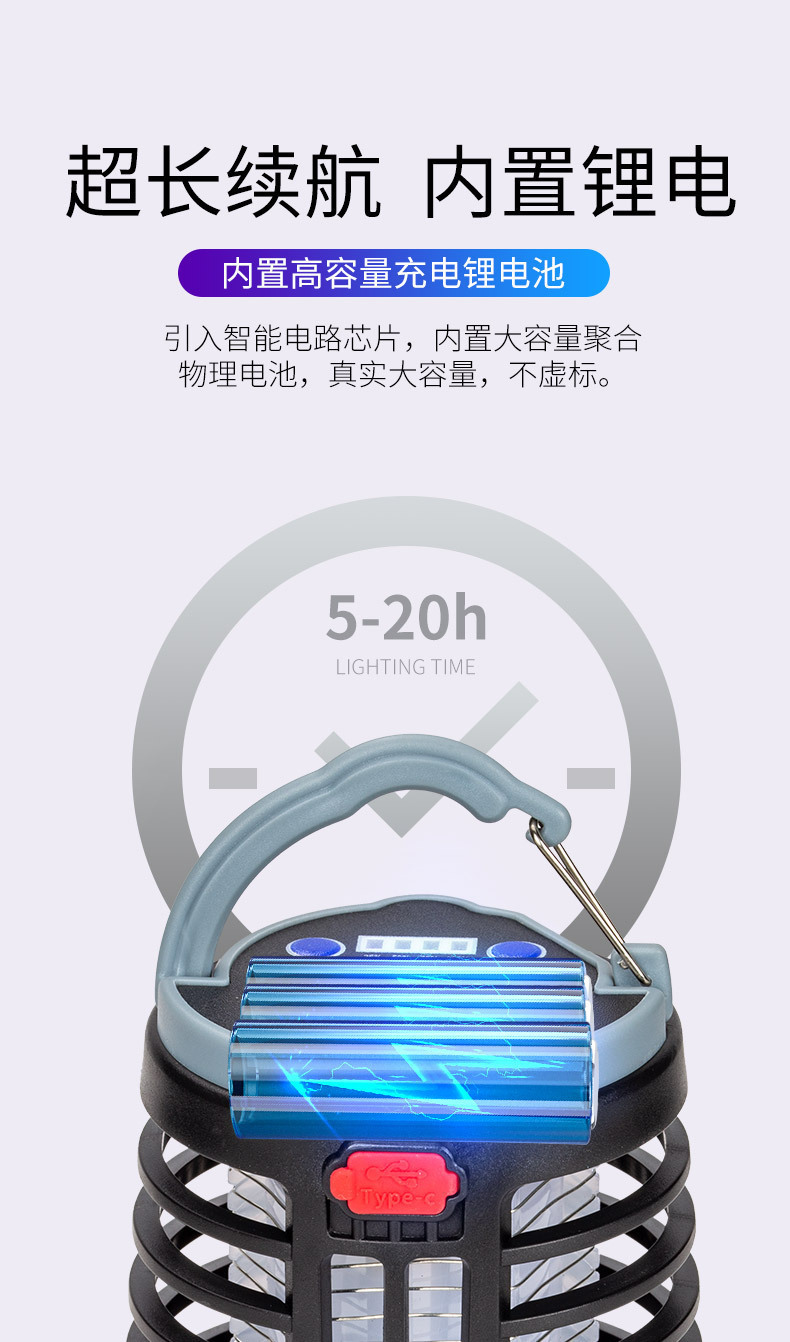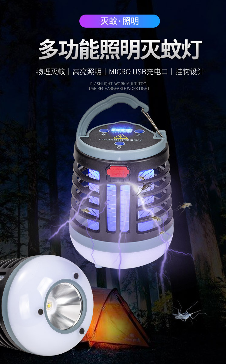 国境を越えた新型屋外蚊取りランプUSB充電LED電気ショック式蚊取り器多機能蚊取り照明キャンプランプ