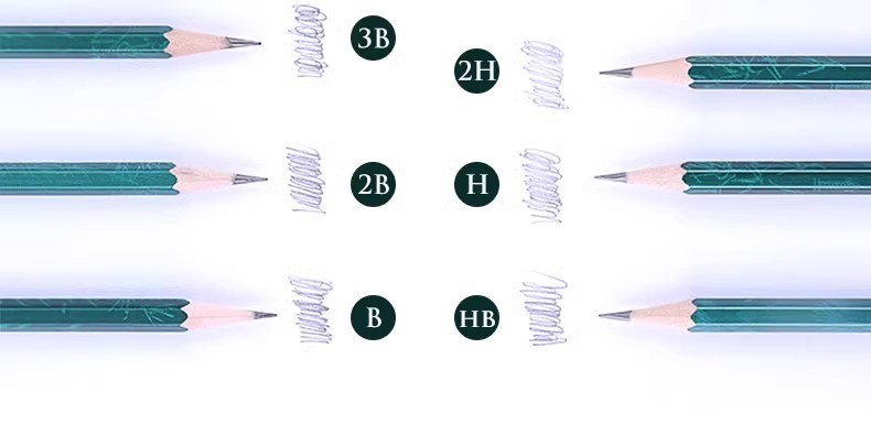 鉛コアの硬度 HB,2B,H,B,3B,4B,5B,6B,3H,6H,111-8B,111-10B,111-12B