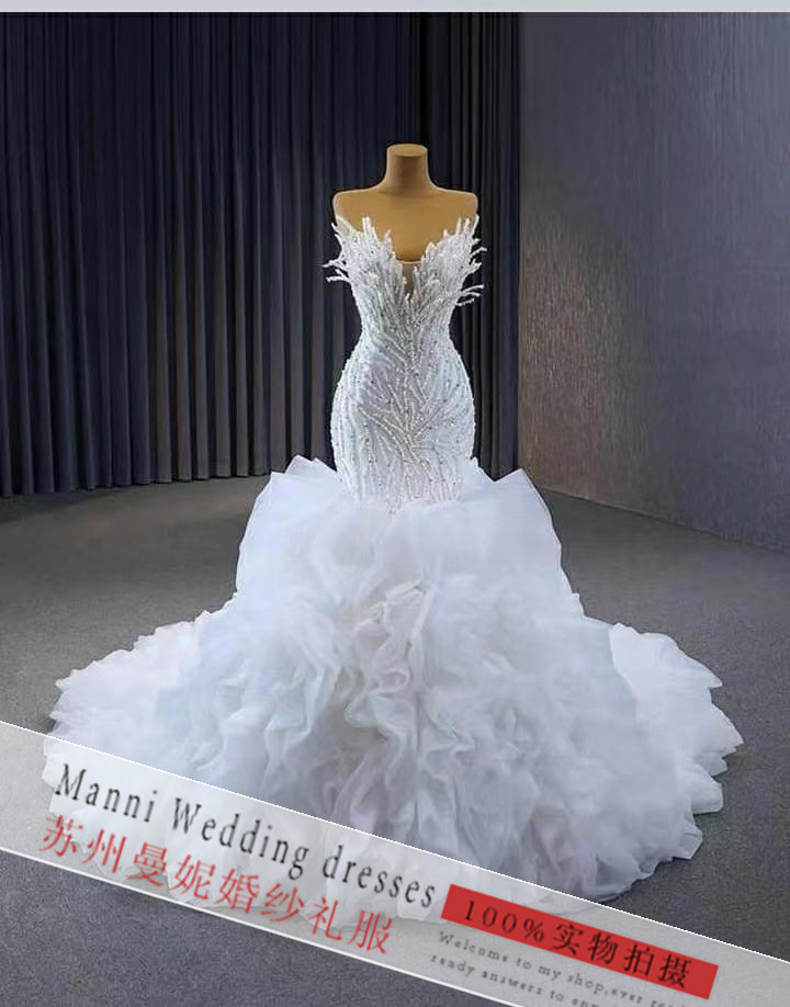 国境を越えた新しい対外貿易ウェディングドレス卸売り花嫁結婚ドリル立体花レース魚尾ウェディングドレス輸出
