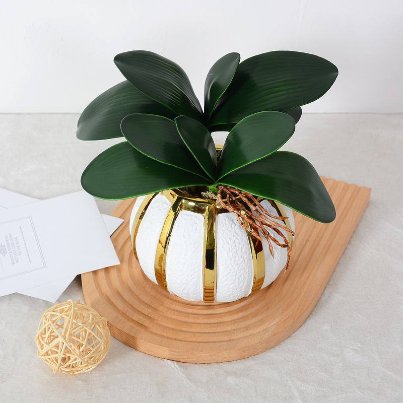 メーカー直販高シミュレーション手触り胡蝶蘭葉結婚祝い家庭装飾生け花偽植物緑植盆栽葉