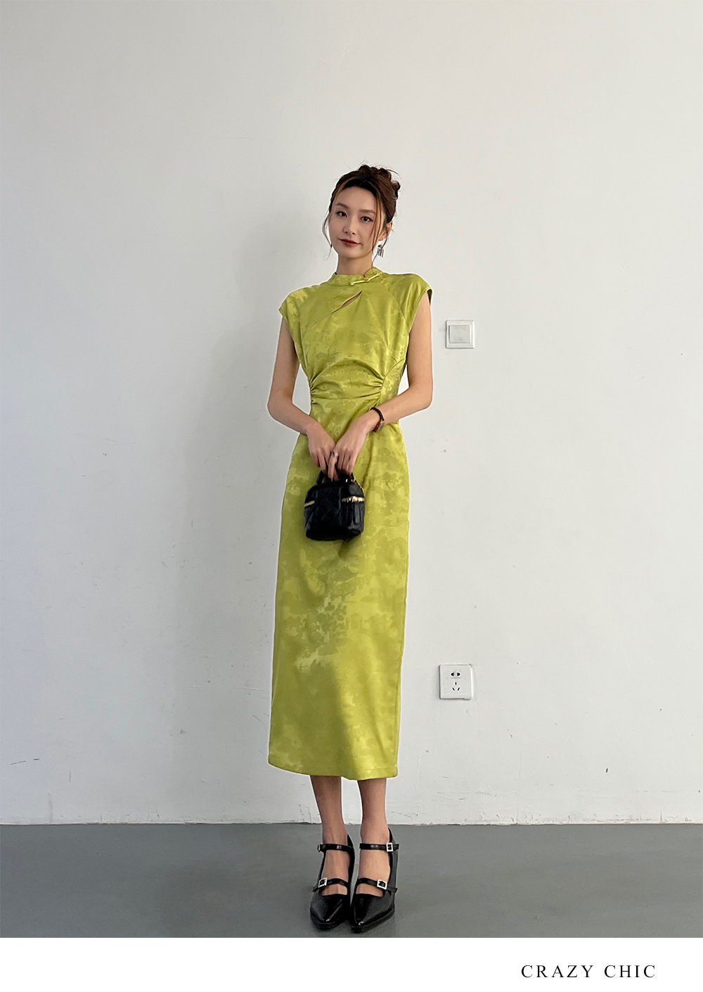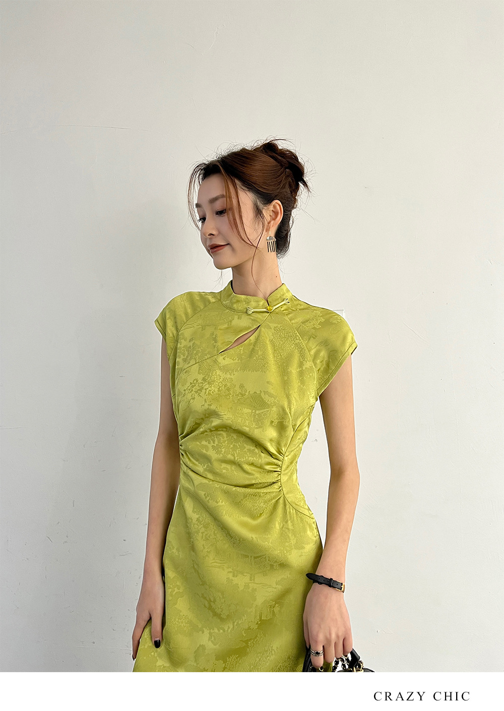 抹茶 2025 春夏新作ピンクジャカード改良チャイナドレスエレガントガール新作チャイナドレス
