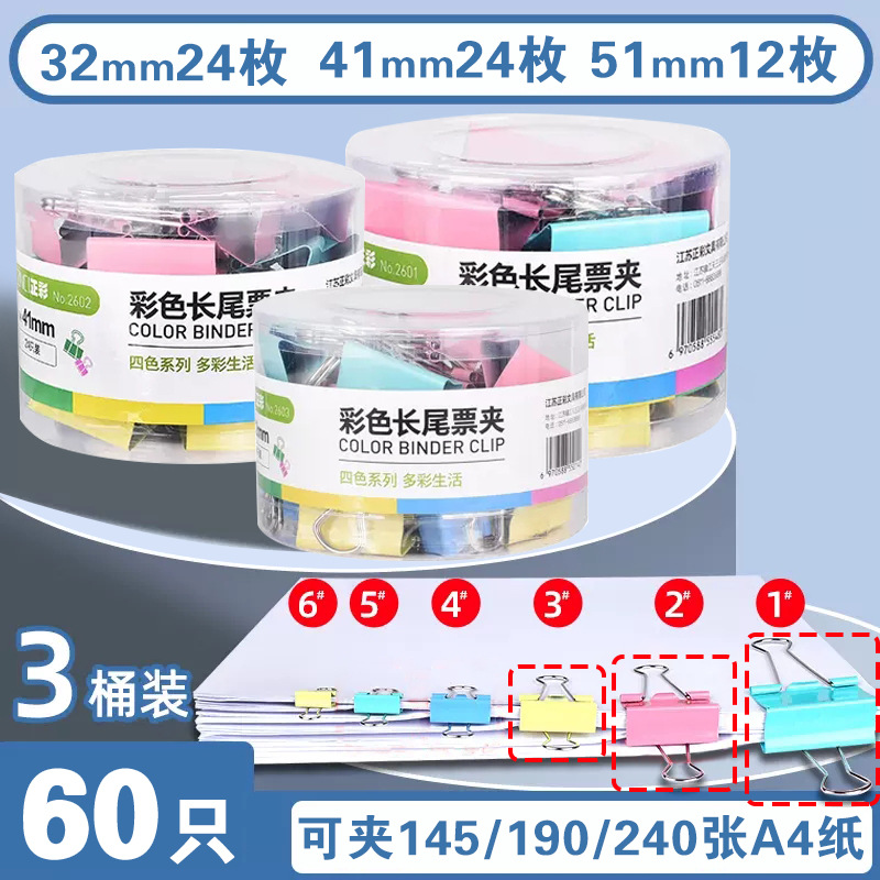 彩色长尾夹大号文件小夹子铁燕尾夹混合装试卷书夹黑色票据夹批发