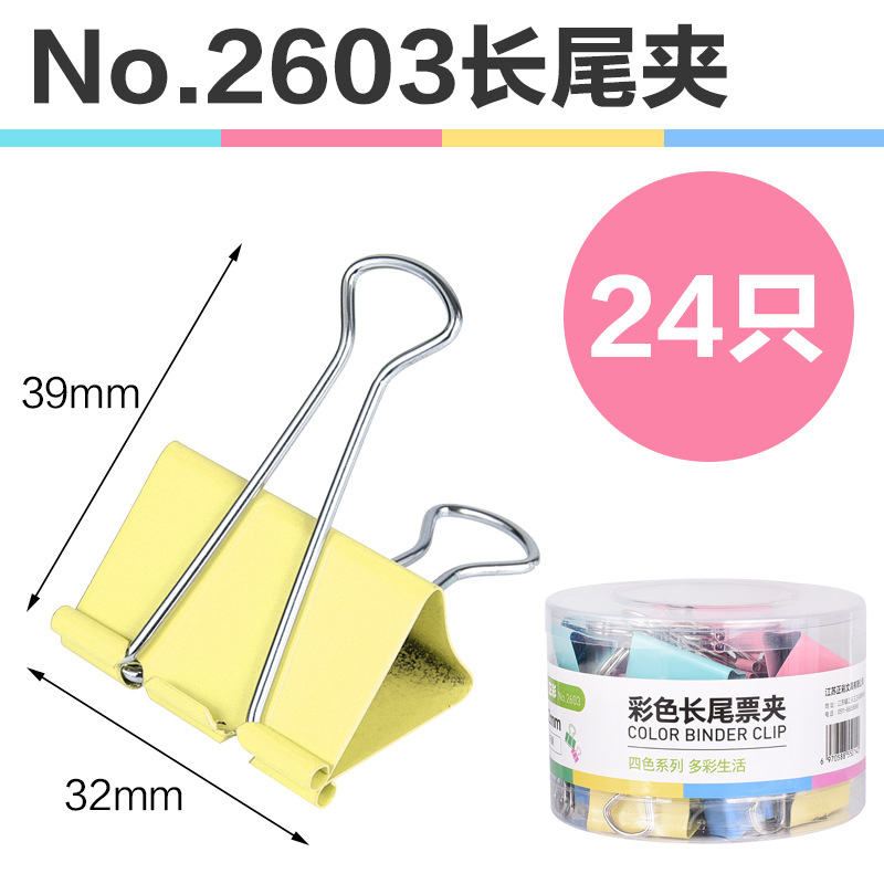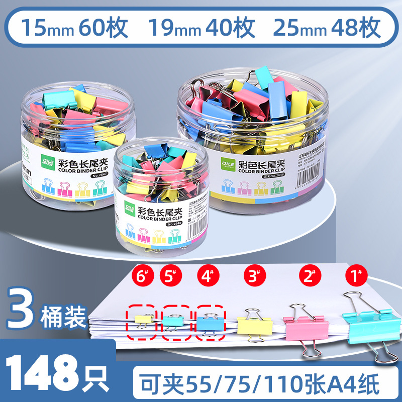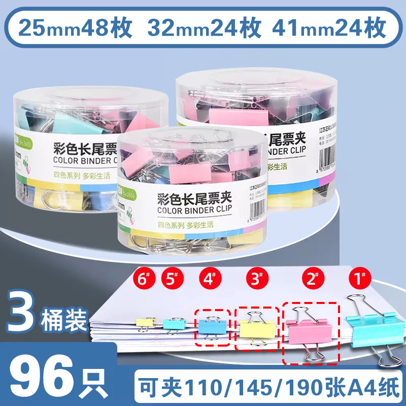 量贩装カラーロングテールクリップ金属手形クリップオフィストランペットアリクリップ资料収纳分类フォルダ