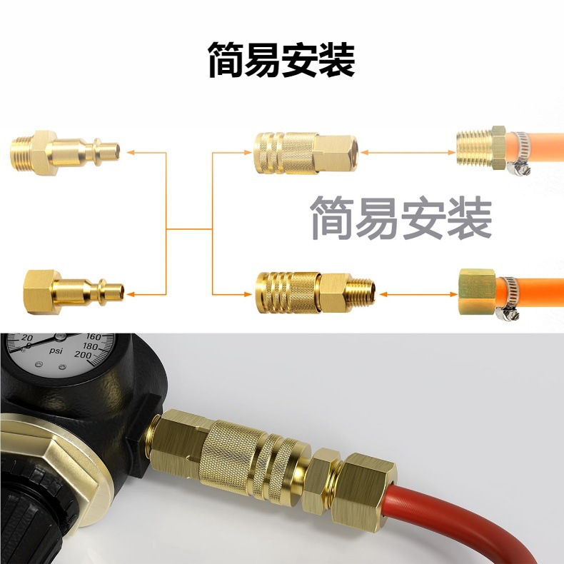 亚马逊黄铜压缩机气动气管接头快速1/4NPT螺纹7件装快插空压机