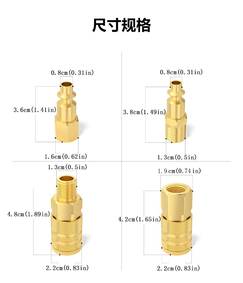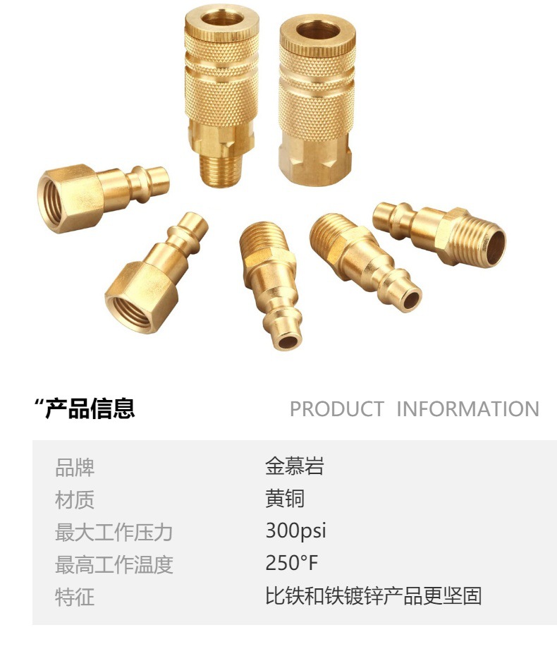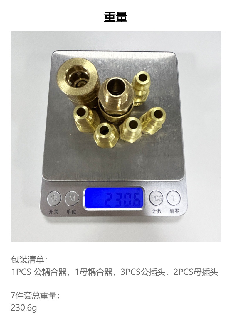 规格型号 1/4 NPT(7件套),纯铜内螺纹,纯铜外螺纹,纯铜外螺纹快插,纯铜内螺纹快插