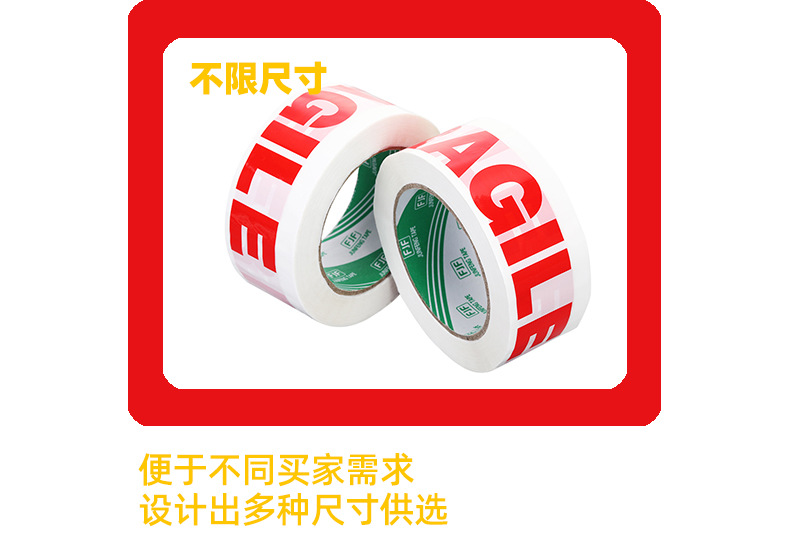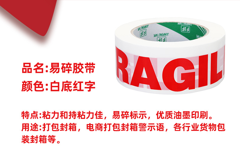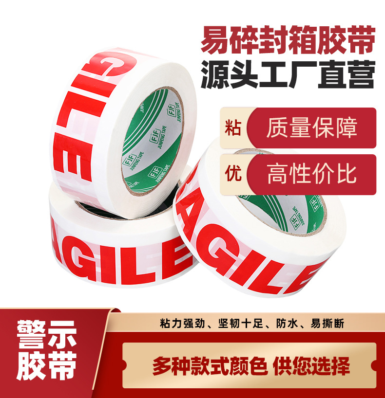 注意:因生产批次不同,该易碎胶带收到货可能出现不带字母E的印字