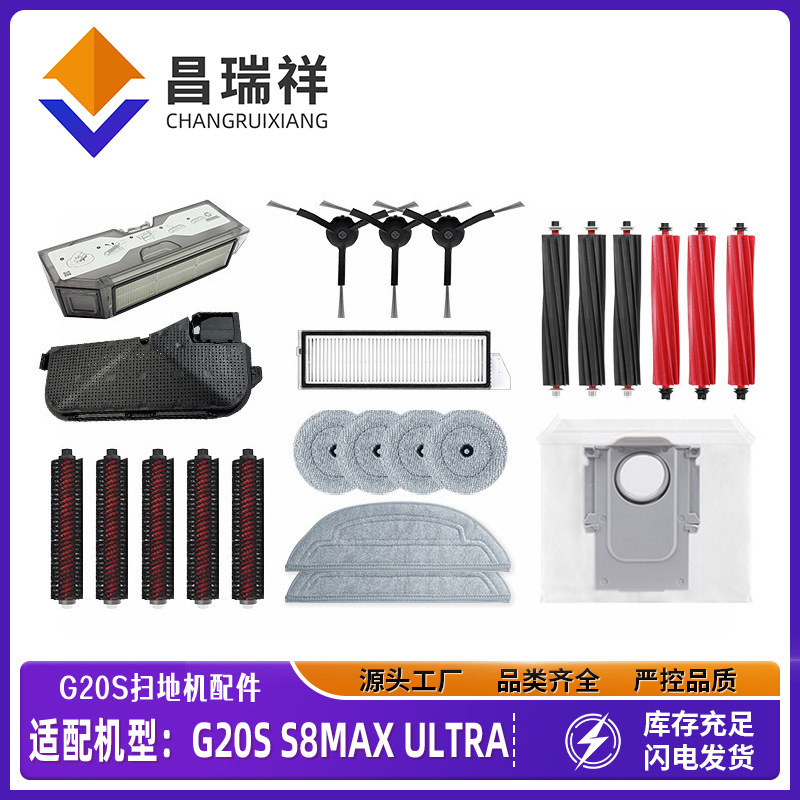 Roborock G20S 掃除機ダストバッグ、雑巾、サイドブラシ、メインブラシカバー、フィルターダストボックス、S8Max Ultra アクセサリーに適しています。