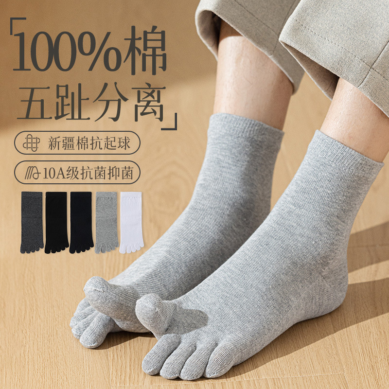 袜子男款纯棉五指袜春秋中筒袜吸汗防臭男袜夏季运动防滑分趾长袜