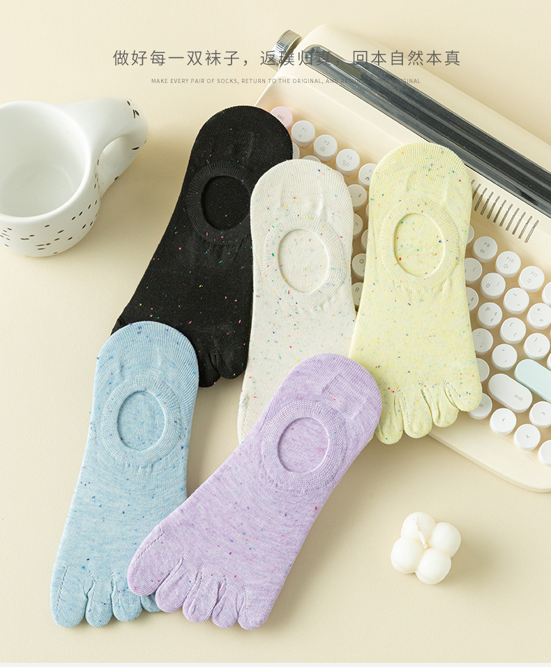 点子紗五本指の靴下の女性の夏の薄いタイプの靴下の女性の船の靴下の浅い口の隠れた靴下の日本のかわいい分指の綿の靴下