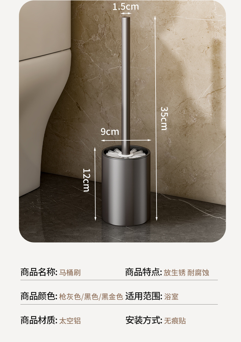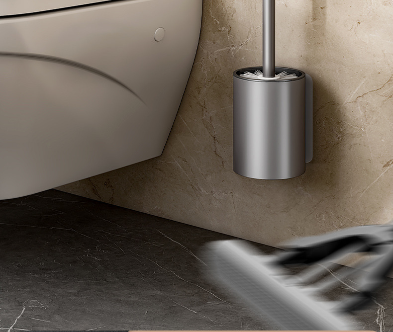 宇宙飛行アルミトイレブラシ死角なしトイレ神器ブラシ壁掛け穴なし家庭用トイレ清潔セット