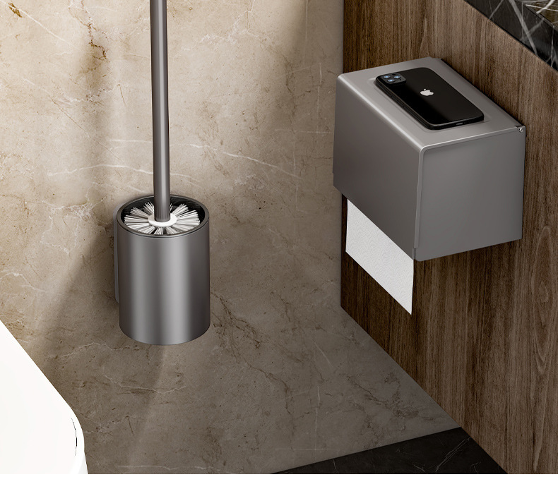 トイレ便器ブラシ宇宙アルミニウム死角なしトイレ神器ブラシ壁掛け穴なし家庭用清潔セット