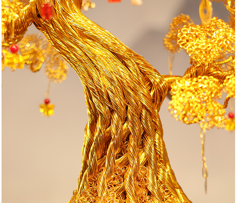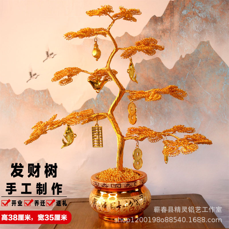 金のなる木は手でアルミの線を編んで金の木を出して工芸品のテレビの棚の装飾品の店を飾ってオープンして金の木を招きます。