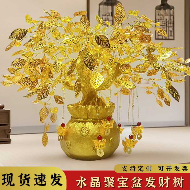金黄色风水摆件开业乔迁客厅招财发财树摆件礼物装饰摇钱树家居